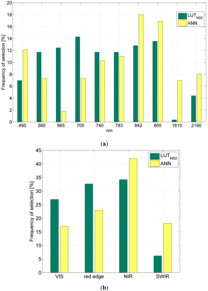 Richter, K.; Hank, T.B.; Vuolo, F.; Mauser, W.; D’Urso, G. Optimal Exploitation of the Sentinel-2 Spectral Capabilities for Crop Leaf Area Index Mapping. Remote Sens. 2012, 4, 561-582. https://doi.org/10.3390/rs4030561
