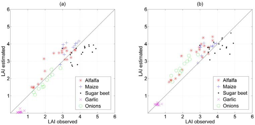 - Meroni, M.; Colombo, R.; Panigada, C. Inversion of a radiative transfer model with hyperspectral observations for lai mapping in poplar plantations. Remote Sens. Environ 2004, 92, 195–206. [Google Scholar]
