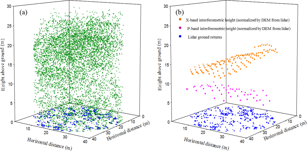 - The high resolution DEM created from the lidar data was used to generate the heights above ground for the X and P bands.