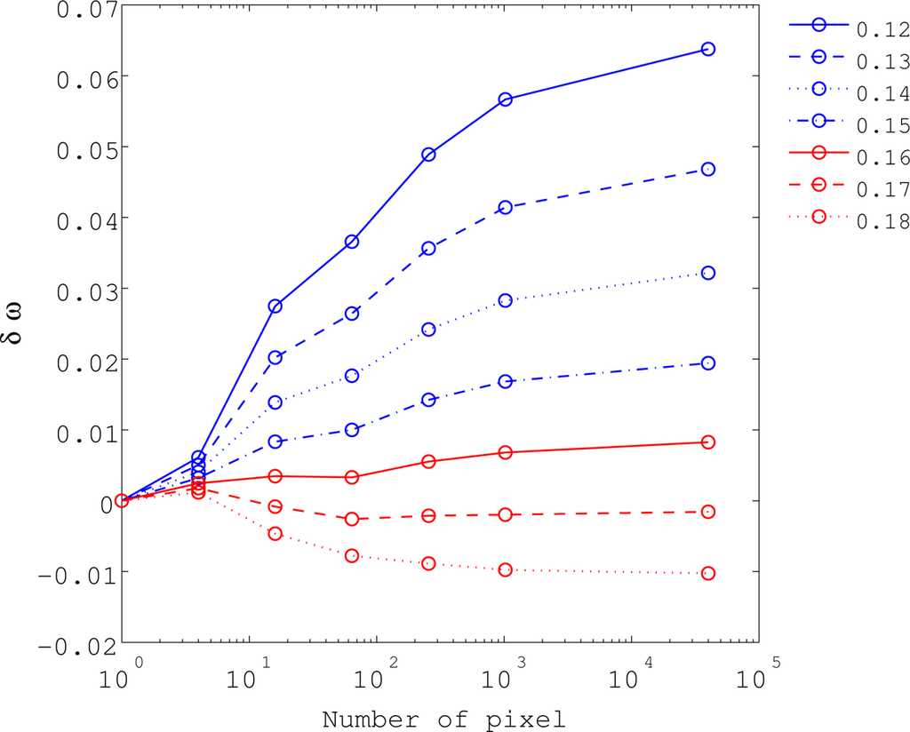 for ζ < 0, however, does not change monotonically with ω2,1 because the sign of the last factor in Equation (25) cannot be unique (dependent on ω2,1). Finally, if ζ = 1, which corresponds to the case of γ =0, the average FVC will be independent of the spatial resolution.