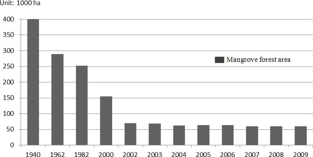 The mangrove forests of Vietnam are among the most productive and biologically complex ecosystems in the world. Mangrove ecosystems are highly productive and provide many ecosystem services for human wellbeing [1–5]. The importance of mangrove forests as a coastal resource is well acknowledged [2,6,7]. Not only do mangrove forests provide commercial fishery resources by acting as nurseries, breeding places and habitat for offshore fisheries [8–11], they also play an important role in stabilizing coastlines, where they serve as natural barriers, dissipating the destructive energy of waves and reducing the impact of hurricanes, cyclones, tsunamis and storm surges [12]. Many studies have acknowledged that regions with intact mangroves have been exposed to significantly lower levels of devastation from cyclones than those with degraded or converted mangroves [6,12–15]. Mangroves are known as a resource for exporting organic matter to the marine environment, producing nutrients for fauna in both the mangroves themselves and adjacent marine and estuarine ecosystems [16]. Additionally, mangrove forests are often a rich source of timber, fuel wood, honey, medicinal plants and other raw materials for local consumption [17]. Finally, mangrove forests attract eco-tourists, fishers, hunters, hikers and birdwatchers, providing valuable or potential sources of national income; moreover, they provide high economic value for residents, who depend on their natural resources [2,18,19].
