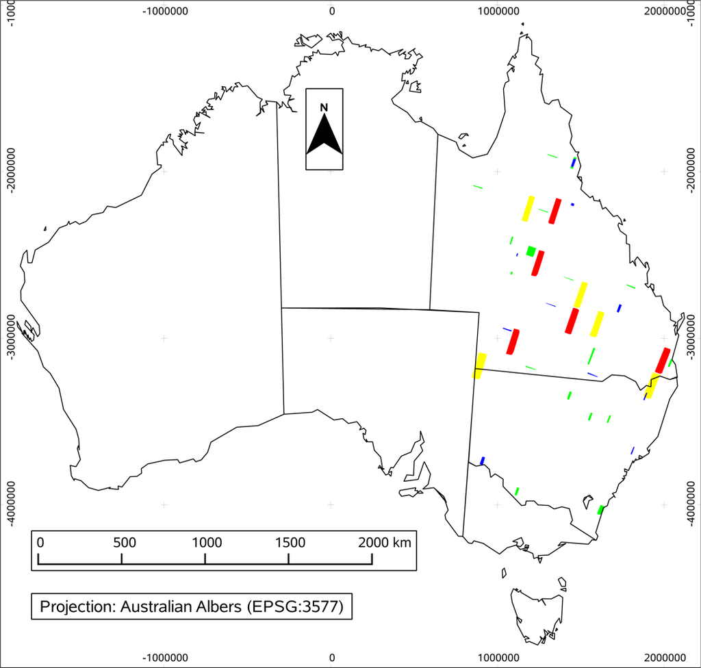 - Department of Environment and Resource Management. Land Cover Change in Queensland 2008–09: A Statewide Landcover and Trees Study (SLATS) Report; Technical Report ISBN 978-1-7423-0904; Queensland Department of Environment and Resource Management: Brisbane, QLD, Australia, 2010. [Google Scholar]