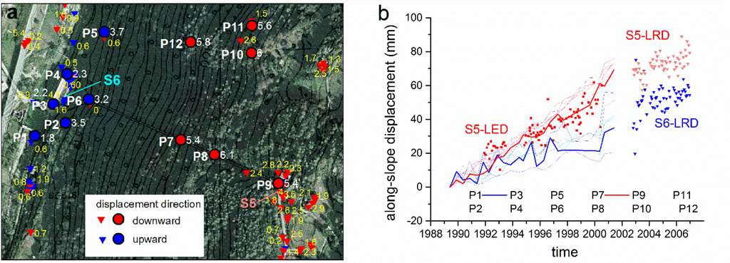 Due to the northward orientation of the slope, we can assume that PS data partially underestimate the actual movement, for the lack of capability to detect N–S-oriented movements, which are predominant in the DSGSD.