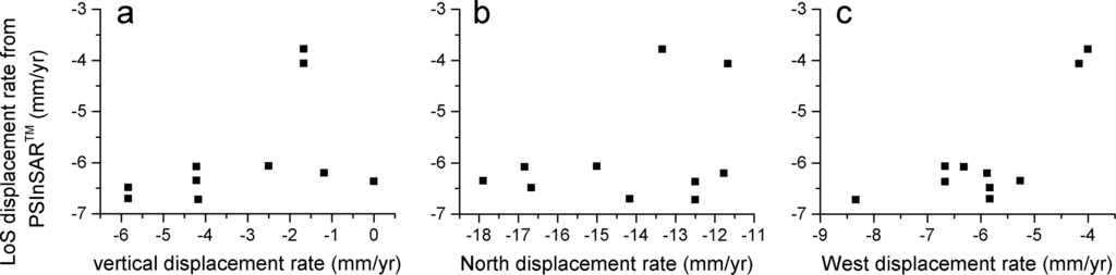 - Colesanti, C.; Ferretti, A.; Locatelli, R.; Novali, F.; Savio, G. Permanent Scatterers: Precision Assessment and Multi-Platform Analysis. Proceedings of IEEE Geoscience and Remote Sensing Symposium (IGARSS’03), Toulouse, France, 21–25 July 2003; pp. 1193–1195.