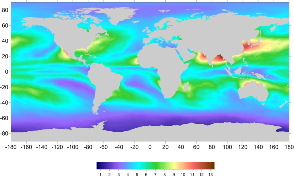 Standard deviation of the WTC (in centimeters) computed from ECMWF operational model grids over the period of two years.