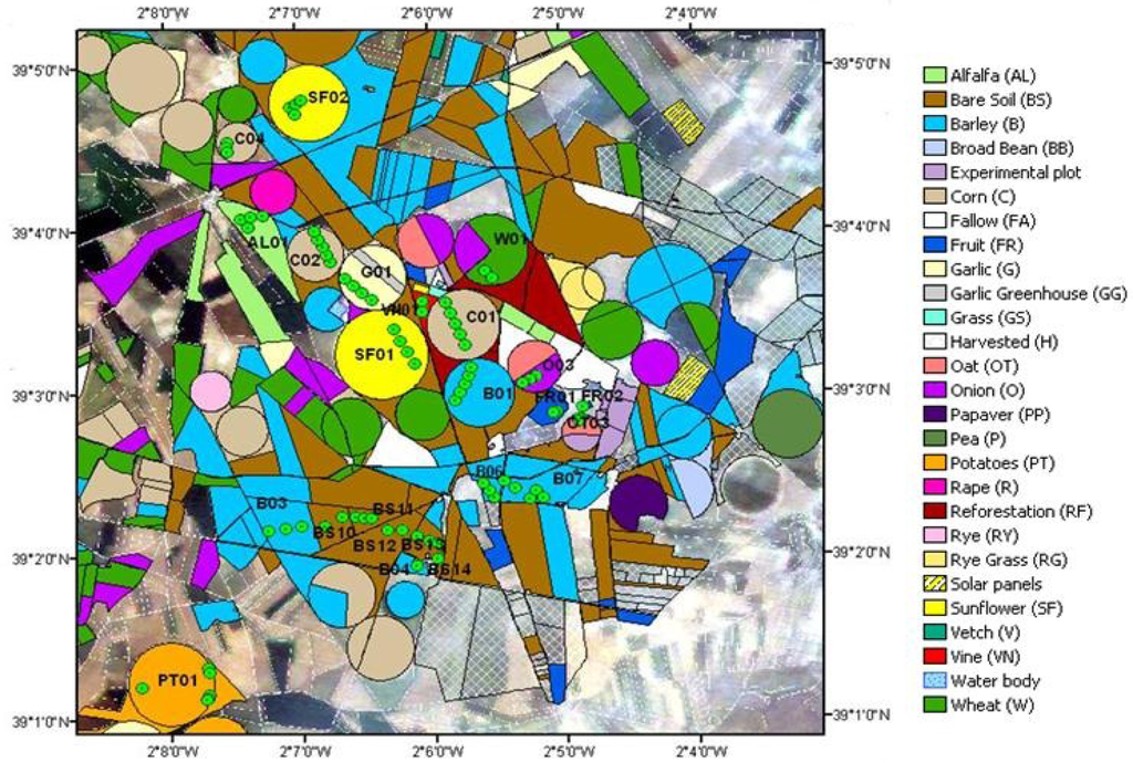Land uses at Barrax area and Elementary Sampling Units’ location (green dots).
