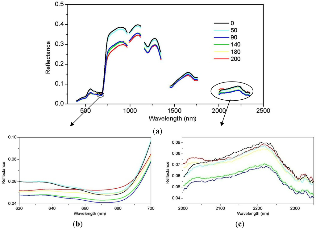 - Verma, K.S.; Saxena, R.K.; Hajare, T.N.; Kharche, V.K.; Kumari, P.A. Spectral response of gram varieties under variable soil conditions. Int. J. Remote Sens 2002, 23, 313–324. [Google Scholar]