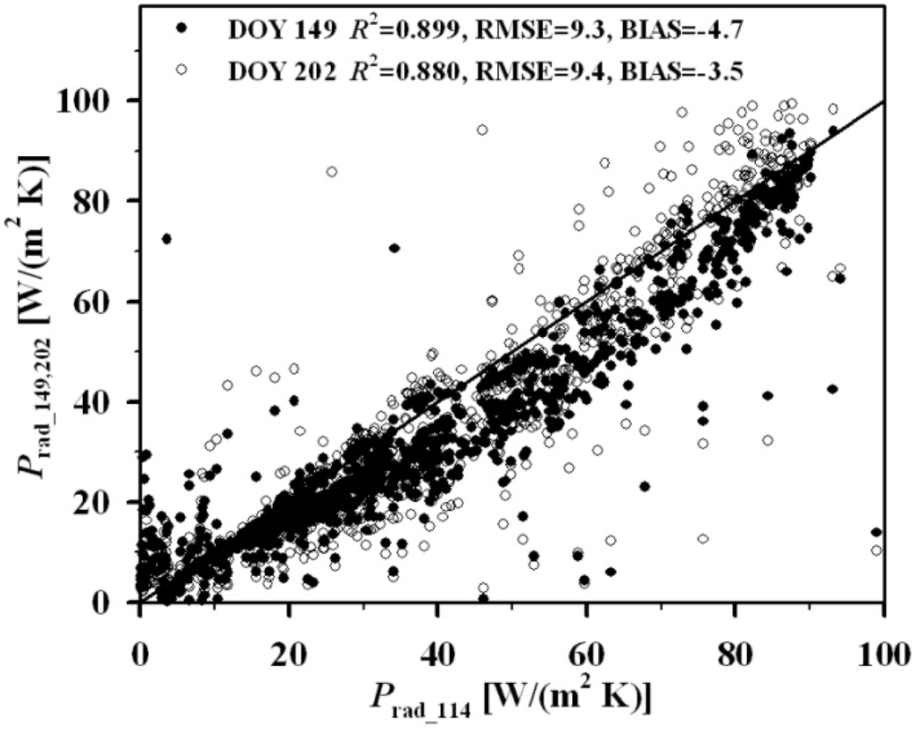 | Terra daytime-Aqua nighttime | Y = 1.0790X − 0.0017 | 0.882 | 0.0037 | |