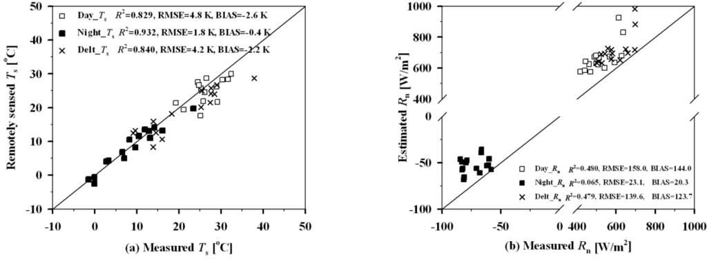 - Norman, J.M.; Kustas, W.P.; Prueger, J.H.; Diak, G.R. Surface flux estimation using radiometric temperature: A dual temperature-difference method to minimize measurement errors. Water Resour. Res 2000, 36, 2263–2274. [Google Scholar]