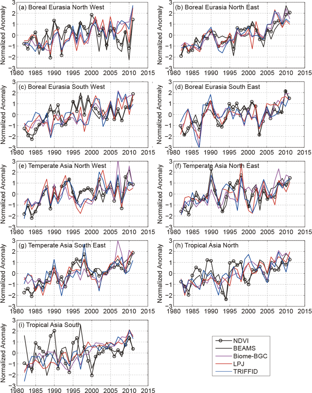 | Region | NDVI | BEAMS | Biome-BGC | LPJ | TRIFFID |