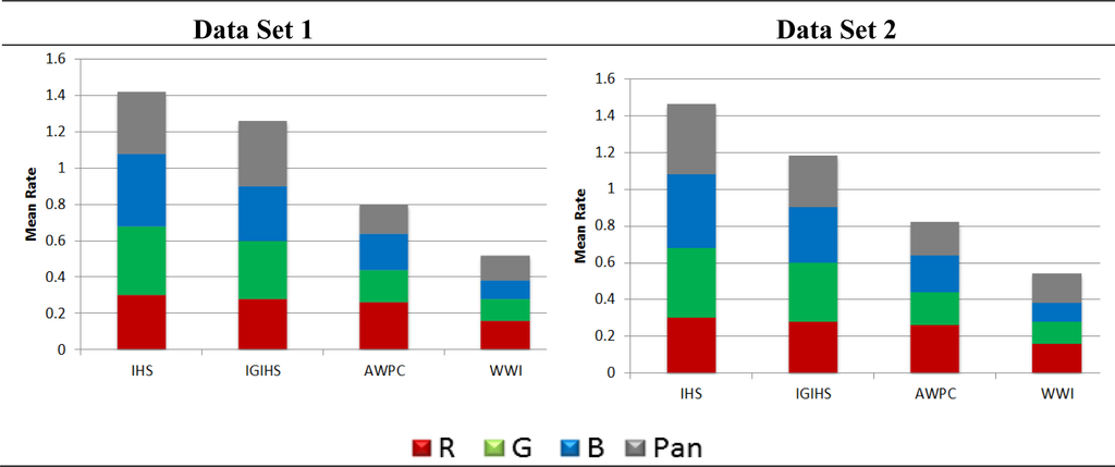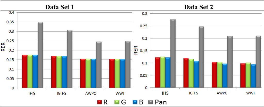 RER based Quality assessment of all pan-sharpening methods in both data sets.