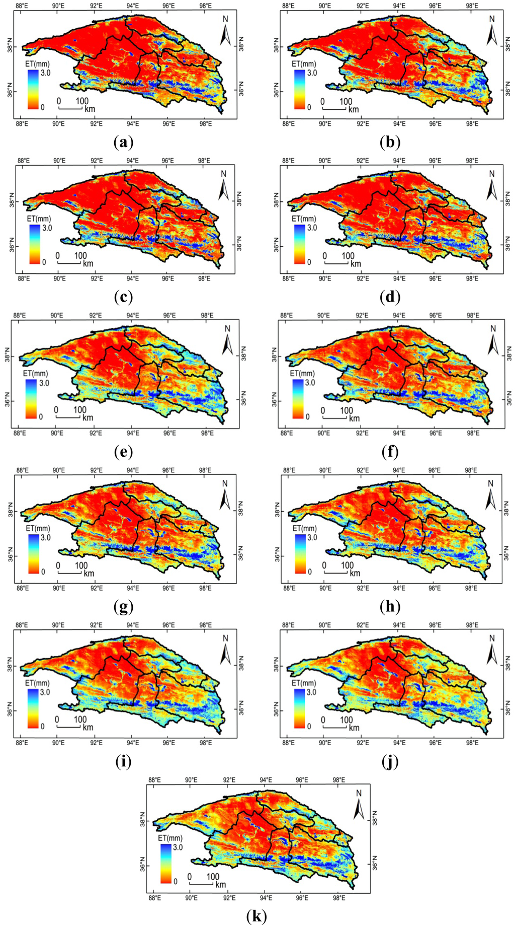Chicago/Turabian StyleJin, Xiaomei, Renhong Guo, and Wei Xia. 2013. "Distribution of Actual Evapotranspiration over Qaidam Basin, an Arid Area in China" Remote Sensing 5, no. 12: 6976-6996. https://doi.org/10.3390/rs5126976