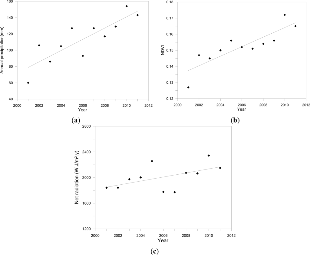 5.1. Effect of Precipitation, NDVI and Net Radiation on Actual Evapotranspiration