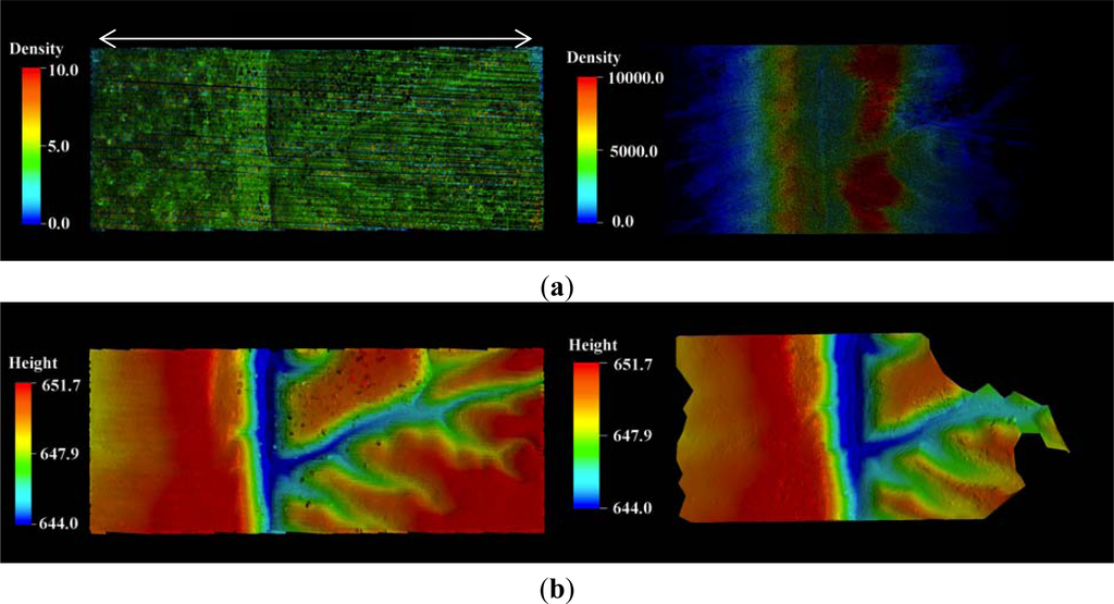 - Filin, S. Recovery of systematic biases in laser altimetry data using natural surfaces. Photogramm. Eng. Remote Sensing 2003, 69, 1235–1242. [Google Scholar]