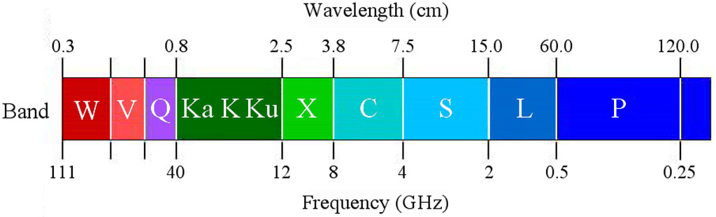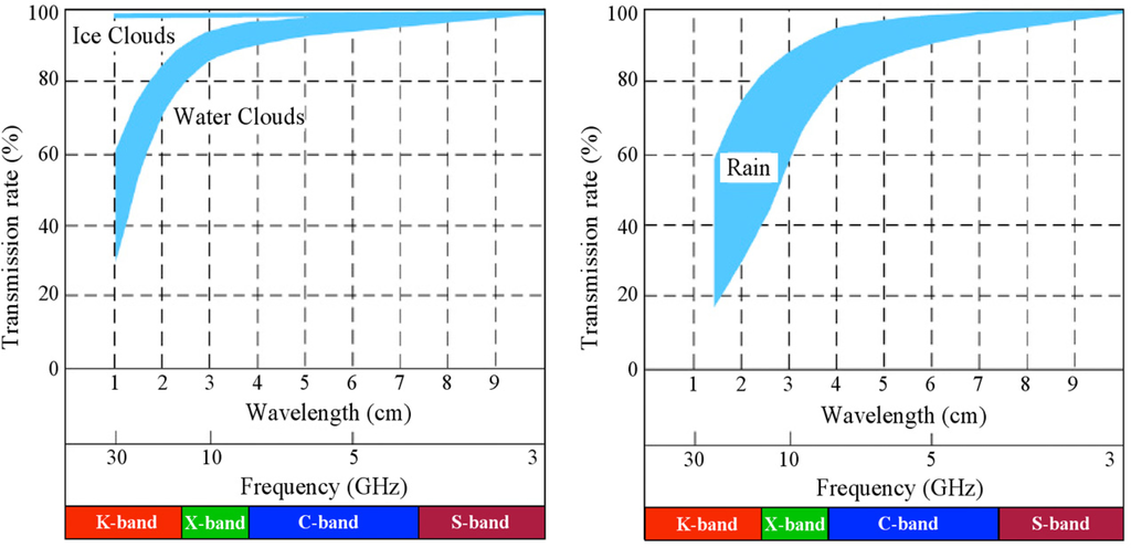 SAR is an imaging radar, which can produce high-resolution radar images of earth’s surface from airborne and spaceborne platforms [5]. Since SAR is an active sensor and uses the microwave band in the broad radio spectrum as in Figure 1, it has a day-and-night imaging capability, and an ability of penetrating could cover, and to some extent, rain (see Figure 2). Further, L-band and P-band SAR has relatively long penetration depth into vegetation and soil, enabling to extract information on the interior of the targets. Because of these characteristics, SAR has been used in various fields of research [6], ranging from oceanography to archeology as listed in Table 1.