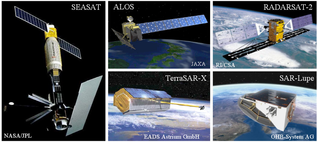 It may be of some interest, although SAR sensors are not onboard, that the SMOS (Soil Moisture and Ocean Salinity) mission [291–293] was launched in 2009 to provide maps of soil moisture and ocean salinity by a passive L-band 2-dimensional microwave interferometric radiometer which is the first of its kind in the spacebone platform.