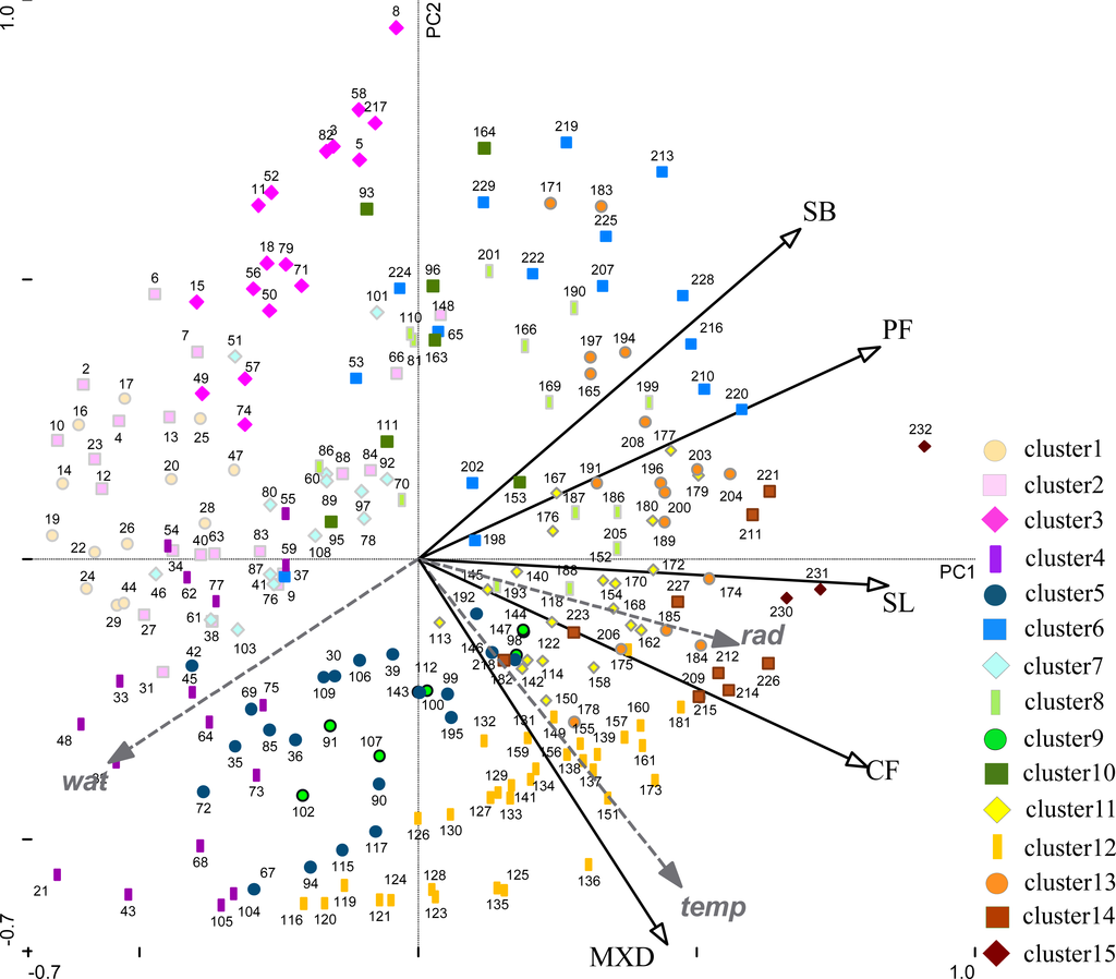 - Redundancy Analysis showed that the gradient of the Ecosystem Functional Types indicates the global pattern of climatic vegetation growth constraints.