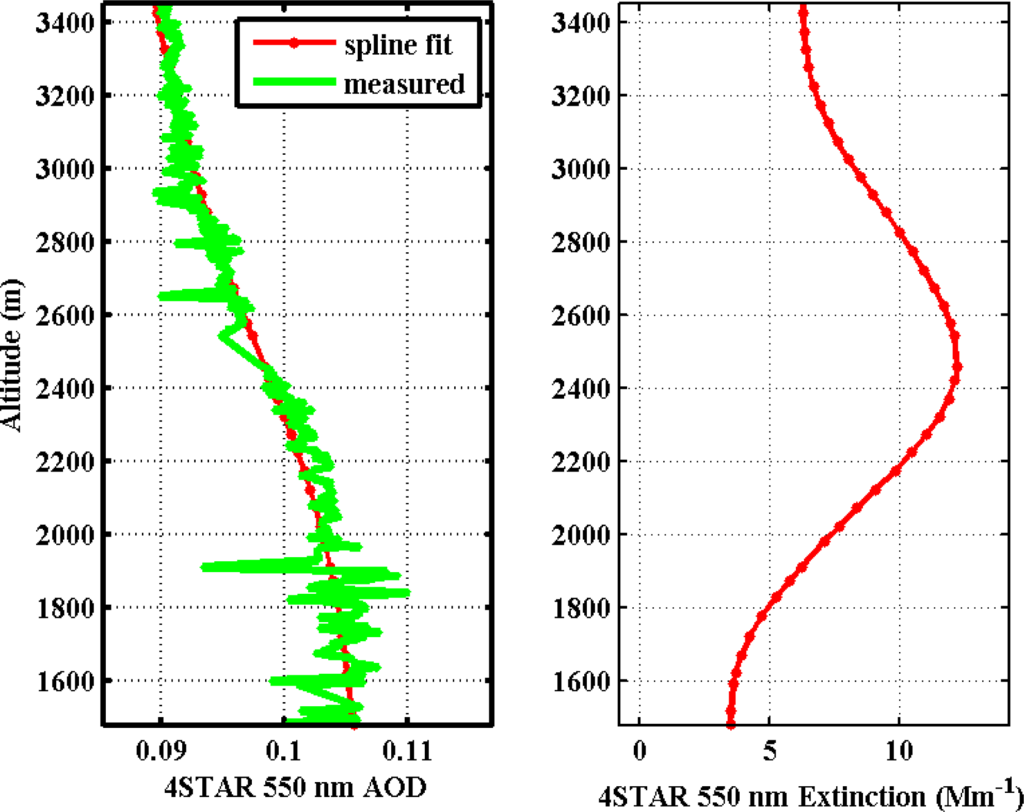 Following this certification flight series the instrument was deployed in both phases of the DOE Two Column Aerosol Project (TCAP) mission in summer 2012 and winter 2013, logging more than 100 flight hours of operation. Both aerosol optical depth and gas absorption measurements were made during this flight experiment. Example data are shown in Figures 17 and 18 and described in scientific context in complementary publications [,] respectively.
