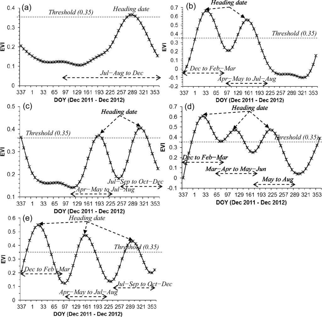 - Canisius, F.; Turral, H.; Molden, D. Fourier analysis of historical NOAA time series data to estimate bimodal agriculture. Int. J. Remote Sens 2007, 28, 5503–5522. [Google Scholar]