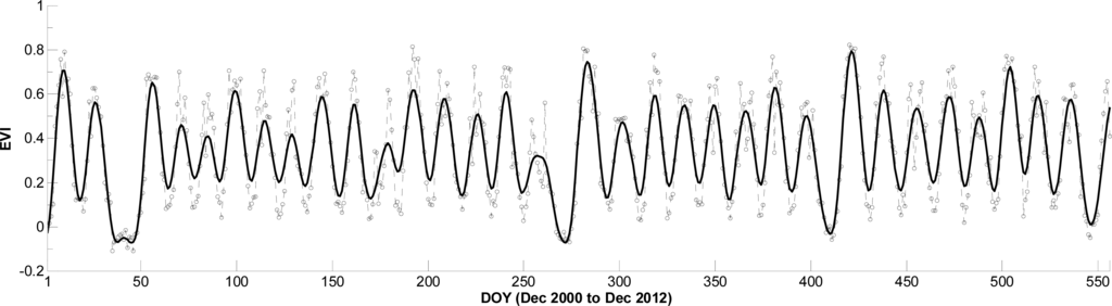 - Atkinson, P.M.; Jeganathan, C.; Dash, J.; Atzberger, C. Inter-comparison of four models for smoothing satellite sensor time-series data to estimate vegetation phenology. Remote Sens. Environ 2012, 123, 400–417. [Google Scholar]