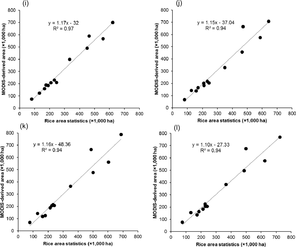 - Bridhikitti, A.; Overcamp, T.J. Estimation of Southeast Asian rice paddy areas with different ecosystems from moderate-resolution satellite imagery. Agric. Ecosyst. Environ 2012, 146, 113–120. [Google Scholar]