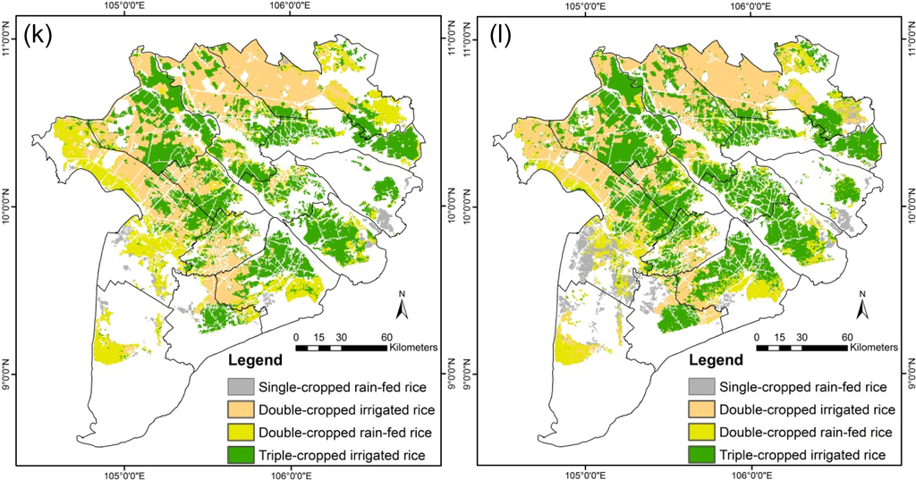 | Single-Cropped Rain-Fed Rice | Double-Cropped Irrigated Rice | Double-Cropped Rain-Fed Rice | Triple-Cropped Irrigated Rice | ||