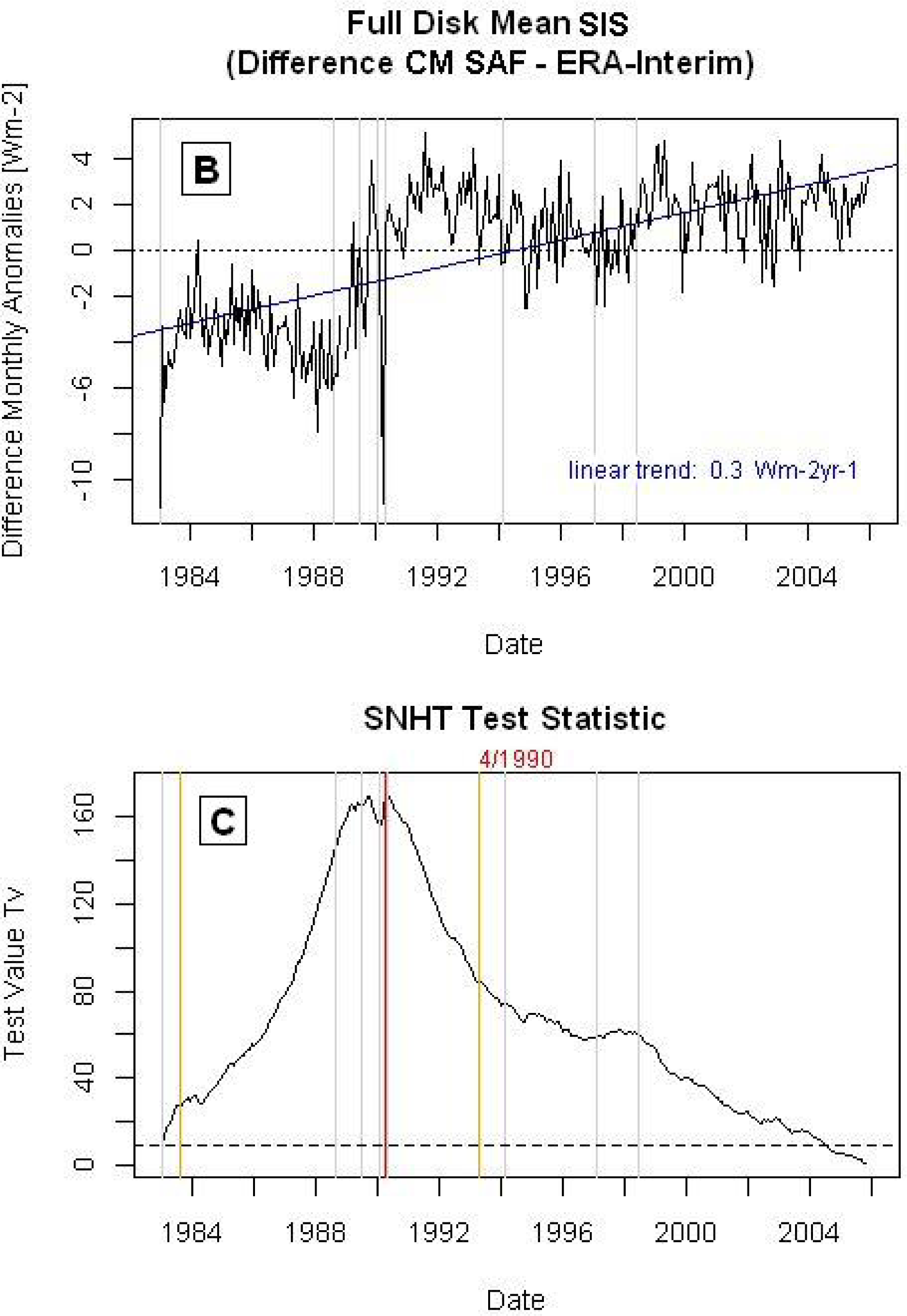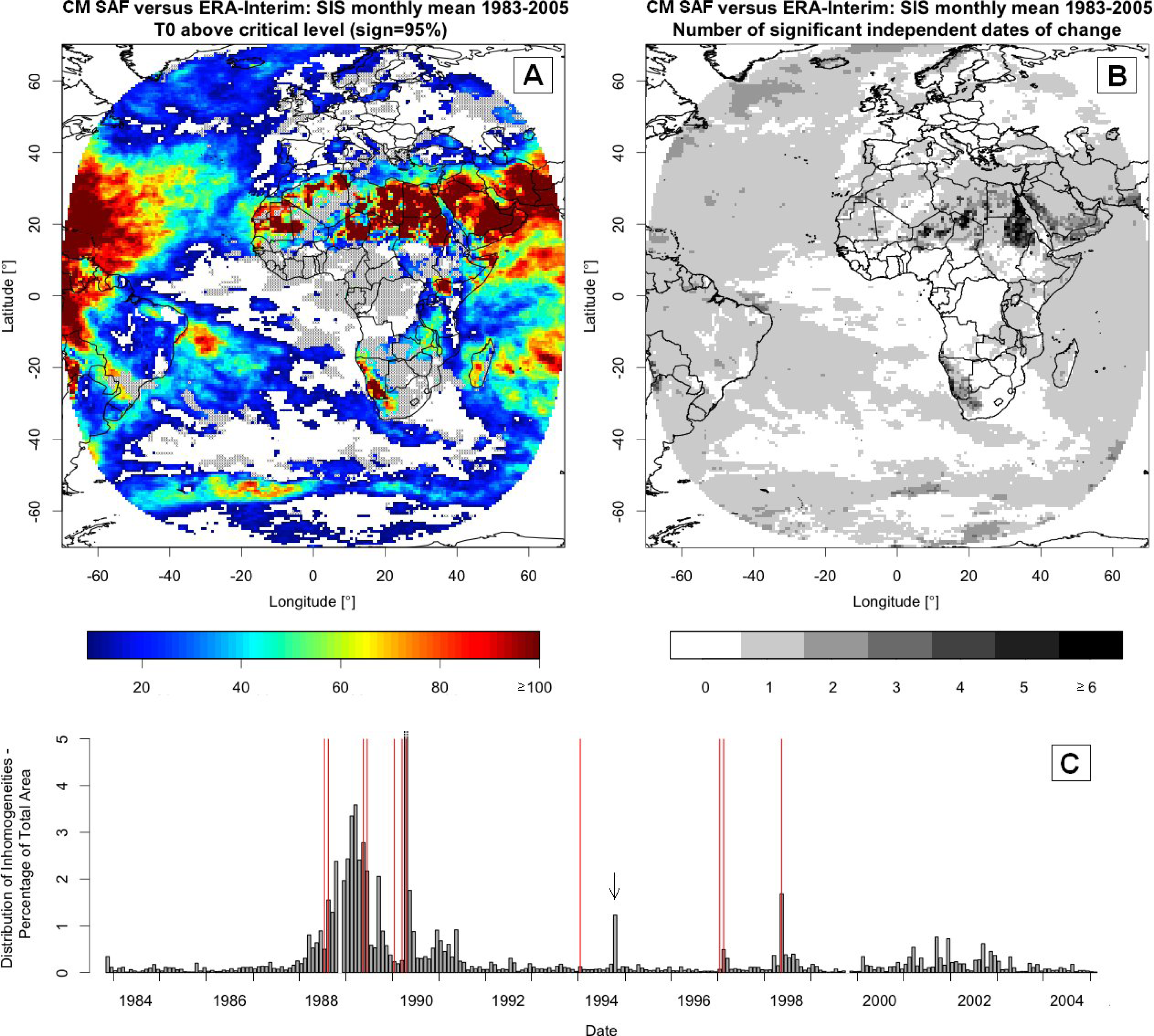 Brinckmann, S.; Trentmann, J.; Ahrens, B. Homogeneity Analysis of the CM SAF Surface Solar Irradiance Dataset Derived from Geostationary Satellite Observations. Remote Sens. 2014, 6, 352-378. https://doi.org/10.3390/rs6010352