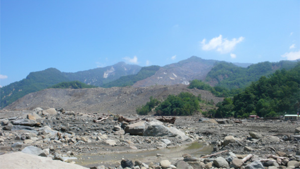 The Shiaolin landslide in Chishan River watershed, Kaohsiung City, triggered by Typhoon Morakot.