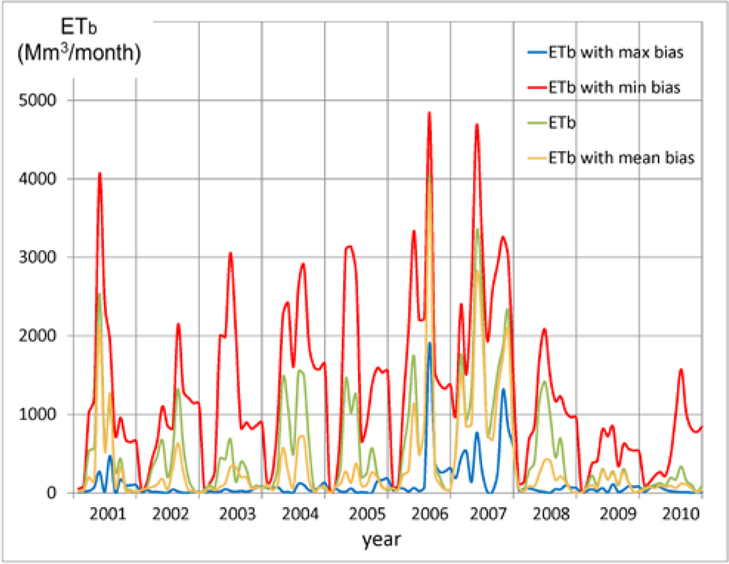 The outputs produced in this paper need to be understood as preliminary examples of application. A better understanding of the ETactual inputs used would be required in order to obtain concluding outcomes. Regarding the bias, Section 4.3 showed how the ETb estimates were sensitive to the bias assignment.