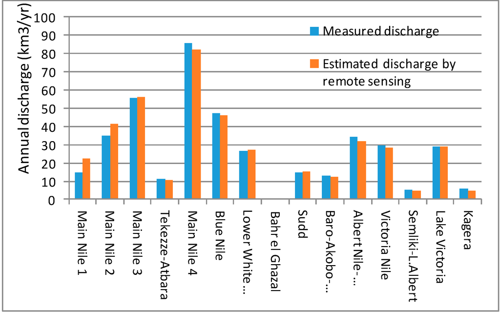 The long-term average flows in the River Nile are measured and published in several sources. Based on data from Sutcliffe and Parks [] and others, river flows at various points in the Nile basin were compiled before by Dai and Trenberth [], Awulachew et al. [], El-Shabraway [] and Johnston []. The water balance for every sub-basin can also be computed from the Earth observation-based P, ET and ΔS data. It is a unique situation to have spatially distributed ET data. In combination with flow data, the ET data will facilitate the understanding of the water balance of the Nile.