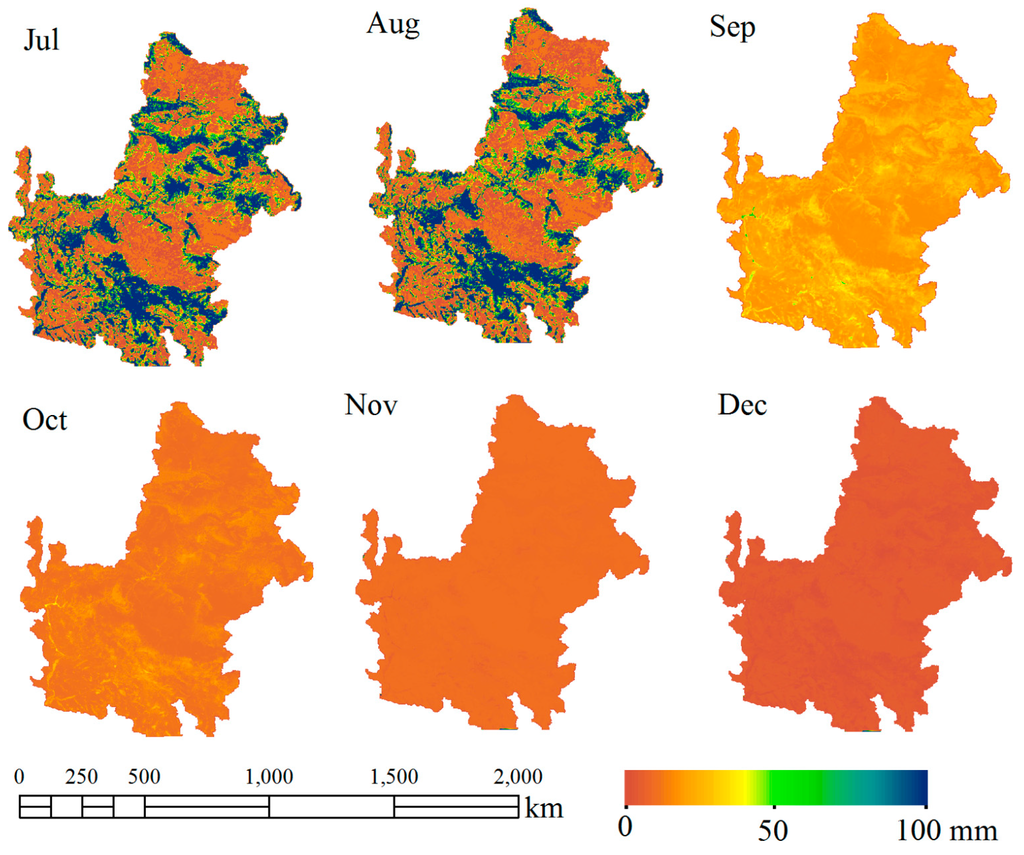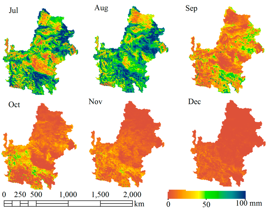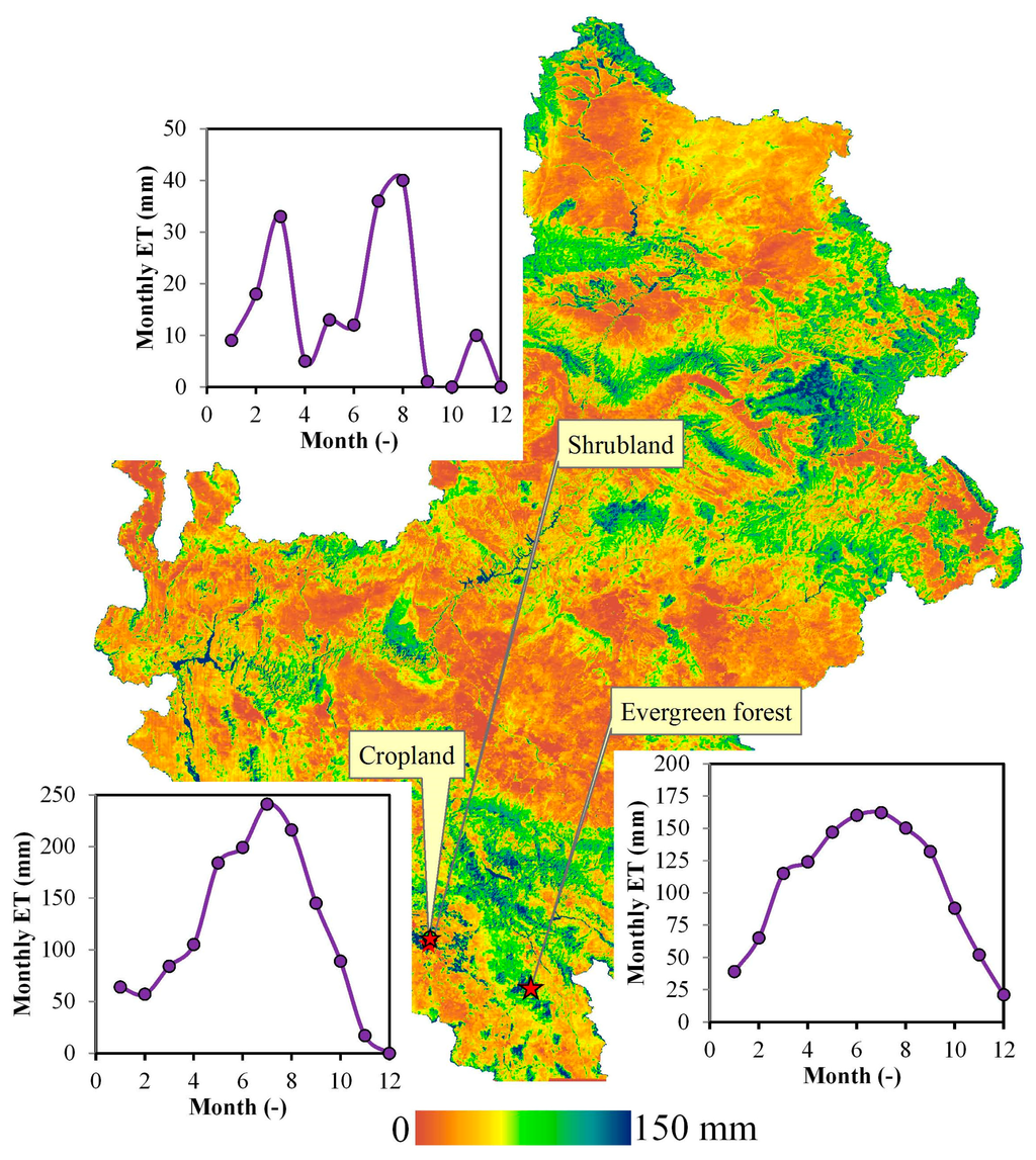 6.5. Comparison of the LinZI Method Monthly Evapotranspiration with Monthly MODIS AET Maps