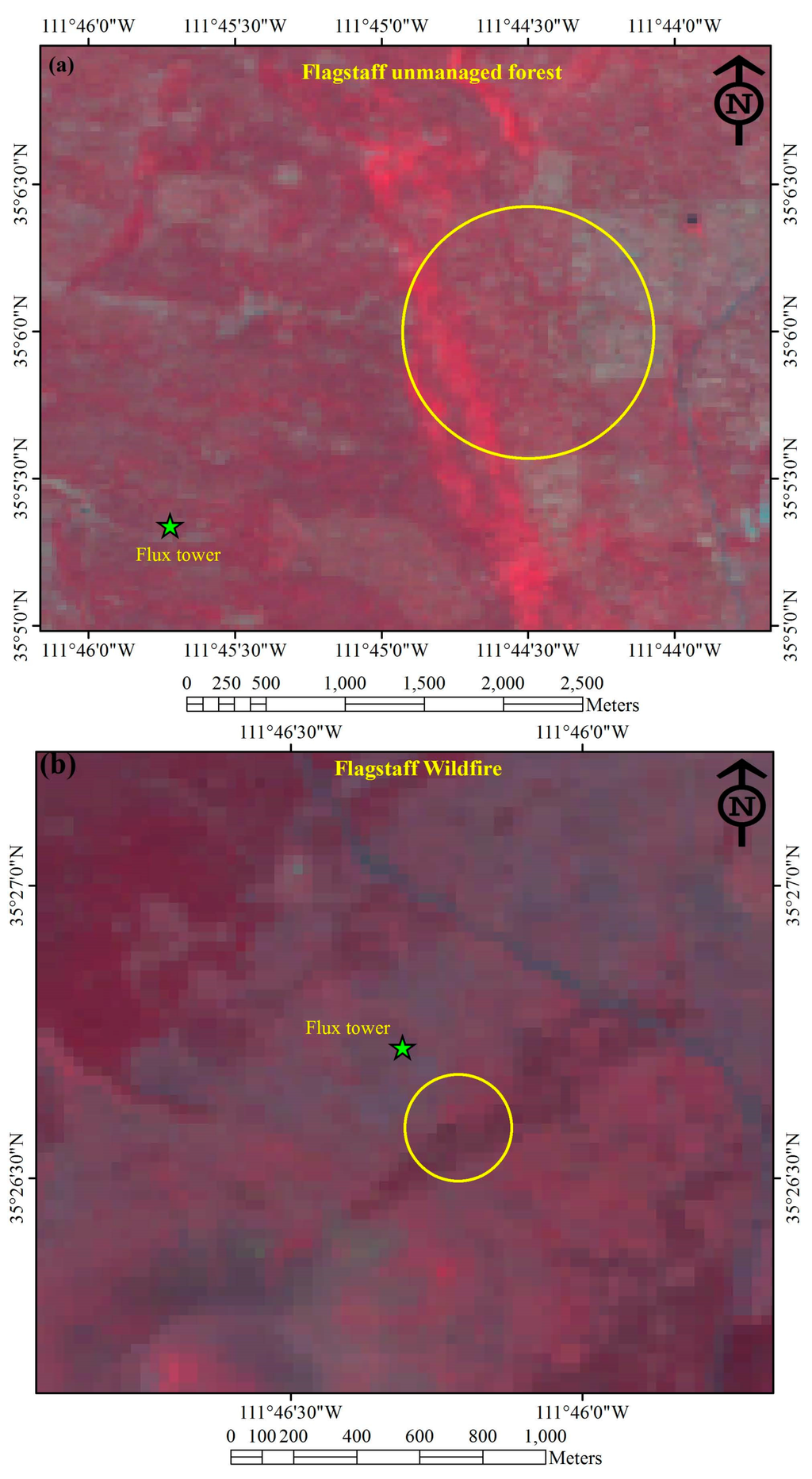 | 3 | Flagstaff wildfire | 35.4454 | −111.7718 | 2270 | 4 | Ponderosa pine forest | 37/35 | 7 | Dore et al. (2012) [52] |