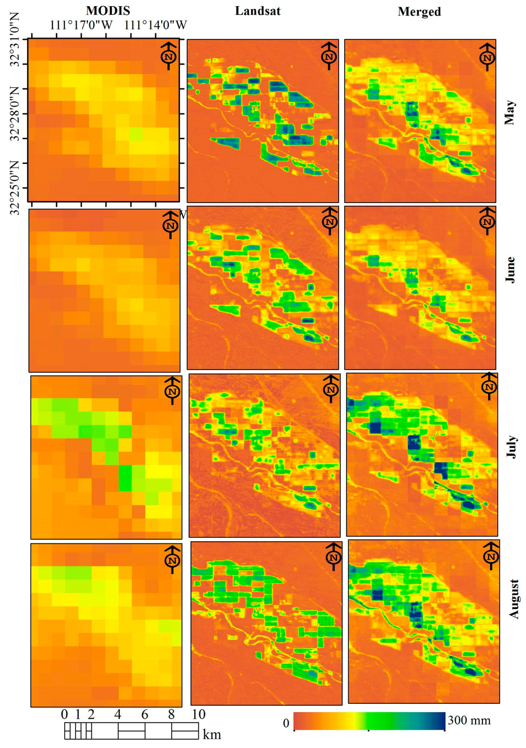 Singh, R.K.; Senay, G.B.; Velpuri, N.M.; Bohms, S.; Verdin, J.P. On the Downscaling of Actual Evapotranspiration Maps Based on Combination of MODIS and Landsat-Based Actual Evapotranspiration Estimates. Remote Sens. 2014, 6, 10483-10509. https://doi.org/10.3390/rs61110483