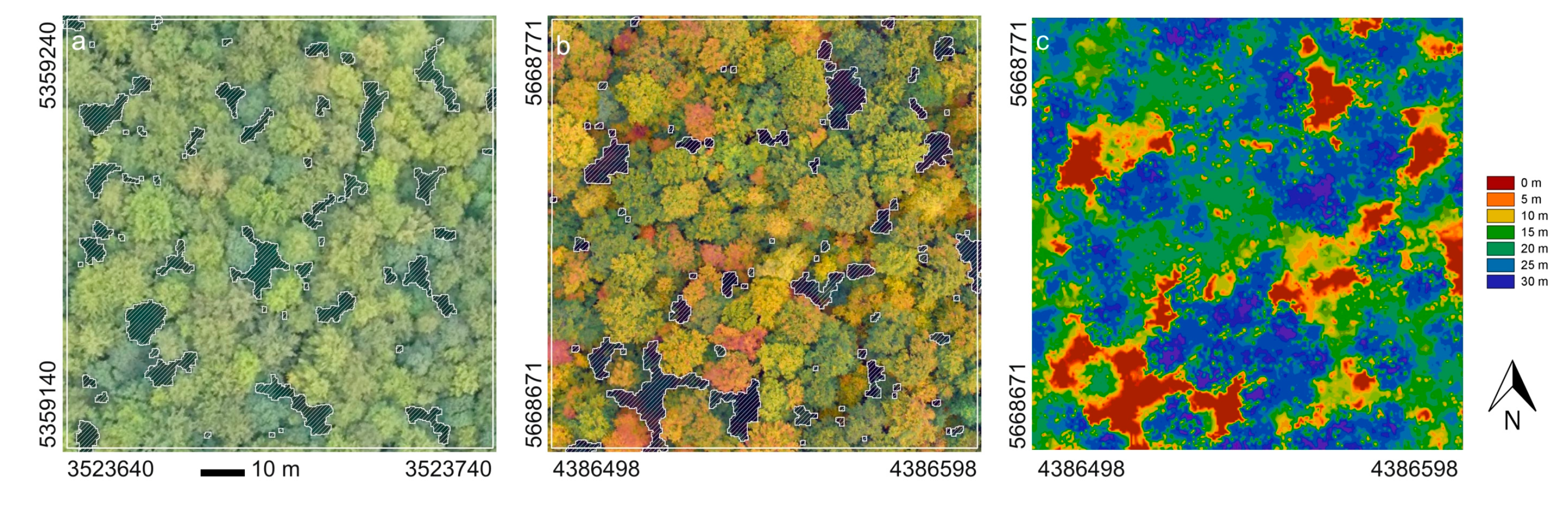 - Getzin, S.; Nuske, R.S.; Wiegand, K. Using unmanned aerial vehicles (UAV) to quantify spatial gap patterns in forests. Remote Sens. 2014, 6, 6988–7004. [Google Scholar] [CrossRef]