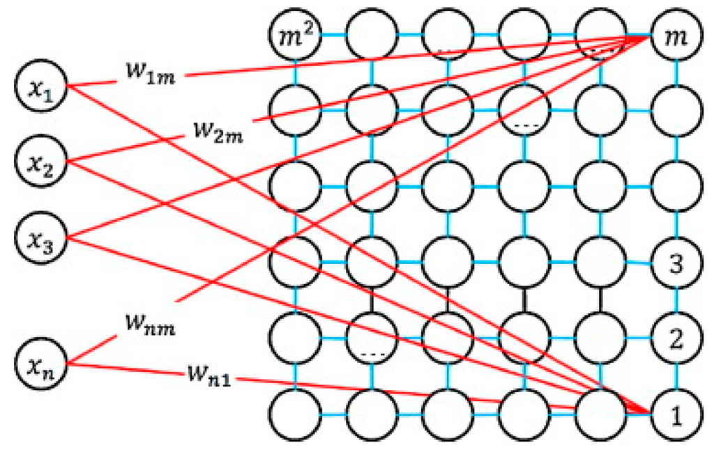 - Kiviluoto, K. Topology preservation in self-organizing maps. In Proceedings of the IEEE International Conference on Neural Networks, Washington, DC, USA, 3–6 June 1996; 1996; pp. 294–299. [Google Scholar]