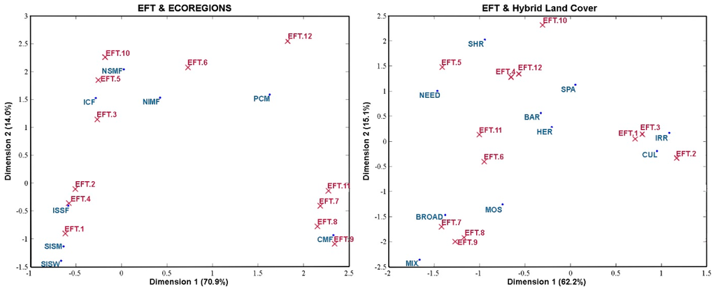5.5. Intercomparison of the EFTs Map with a Land Cover and Ecoregion Classification