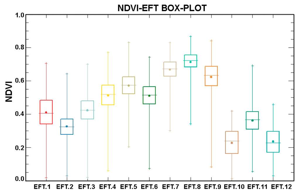 3.1. Normalized Difference Vegetation Index (NDVI)