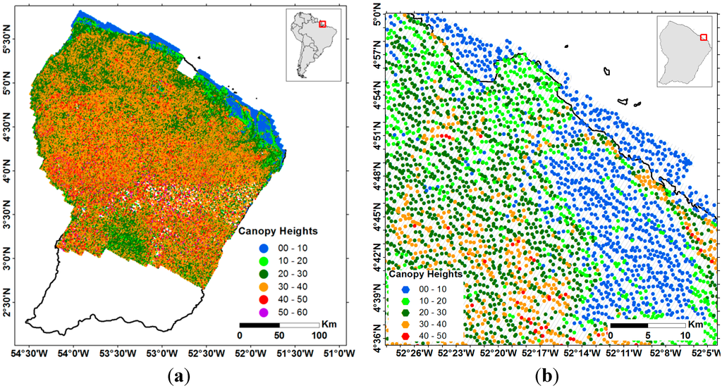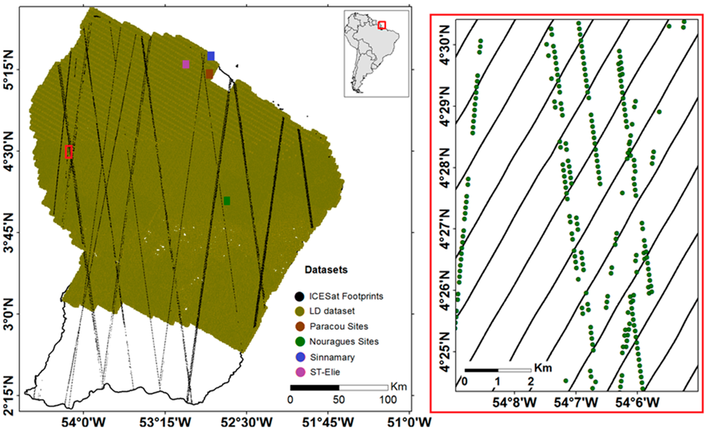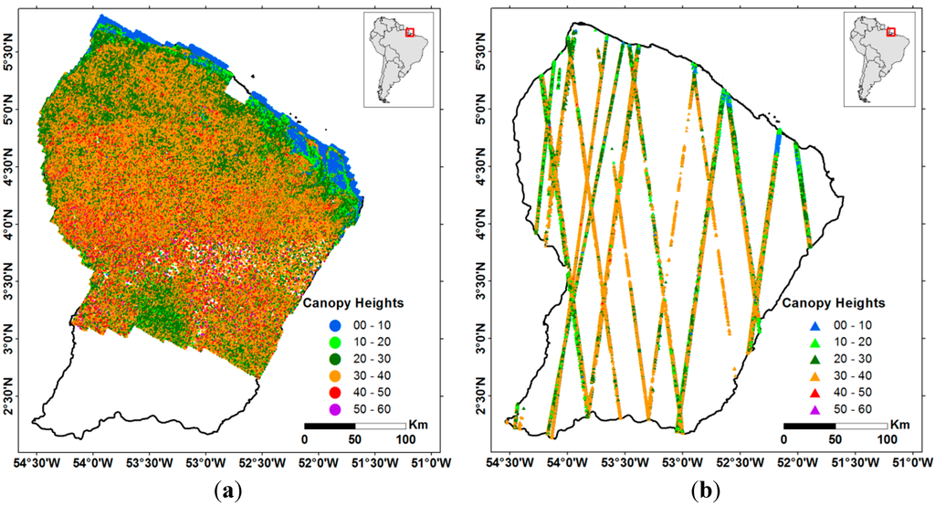 Fayad, I.; Baghdadi, N.; Bailly, J.-S.; Barbier, N.; Gond, V.; Hajj, M.E.; Fabre, F.; Bourgine, B. Canopy Height Estimation in French Guiana with LiDAR ICESat/GLAS Data Using Principal Component Analysis and Random Forest Regressions. Remote Sens. 2014, 6, 11883-11914. https://doi.org/10.3390/rs61211883