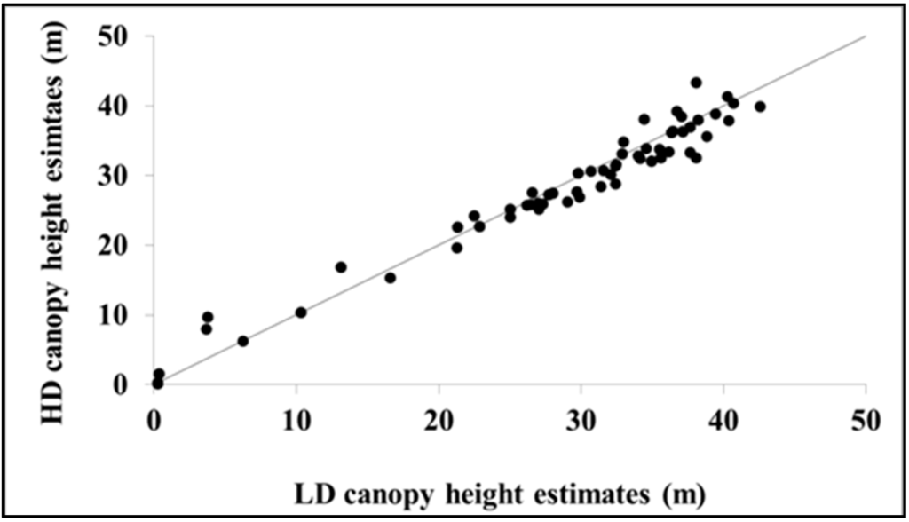 3.1.3. Comparison of Canopy Height Estimates from the LD and HD Datasets