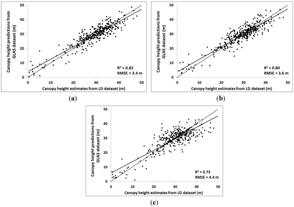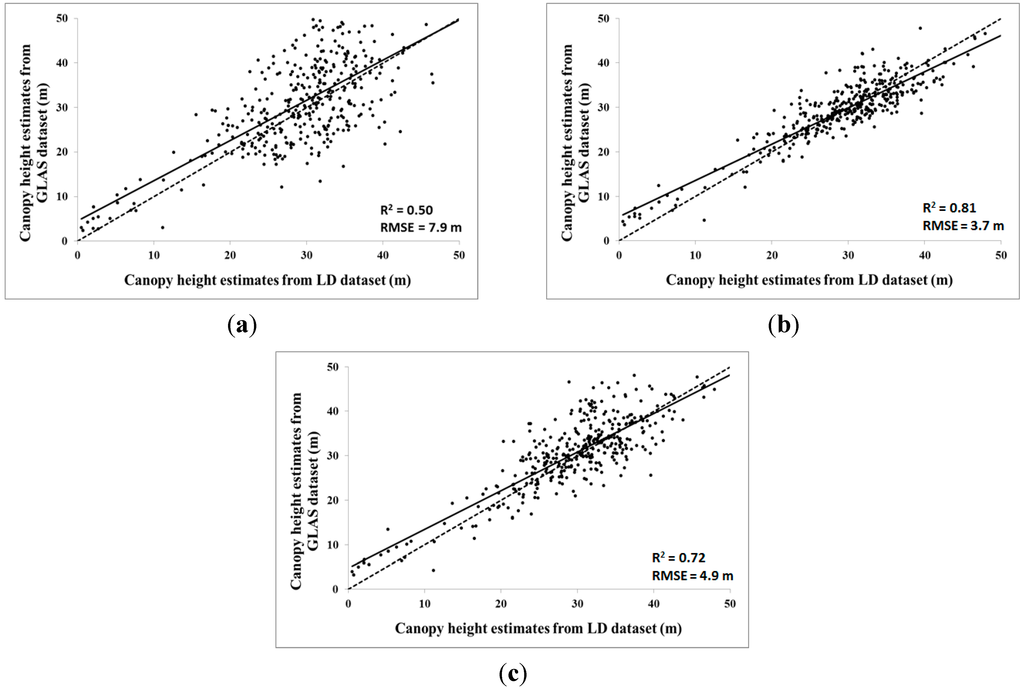 3.3.2. Multiple Regression Models Using GLAS and DEM Metrics