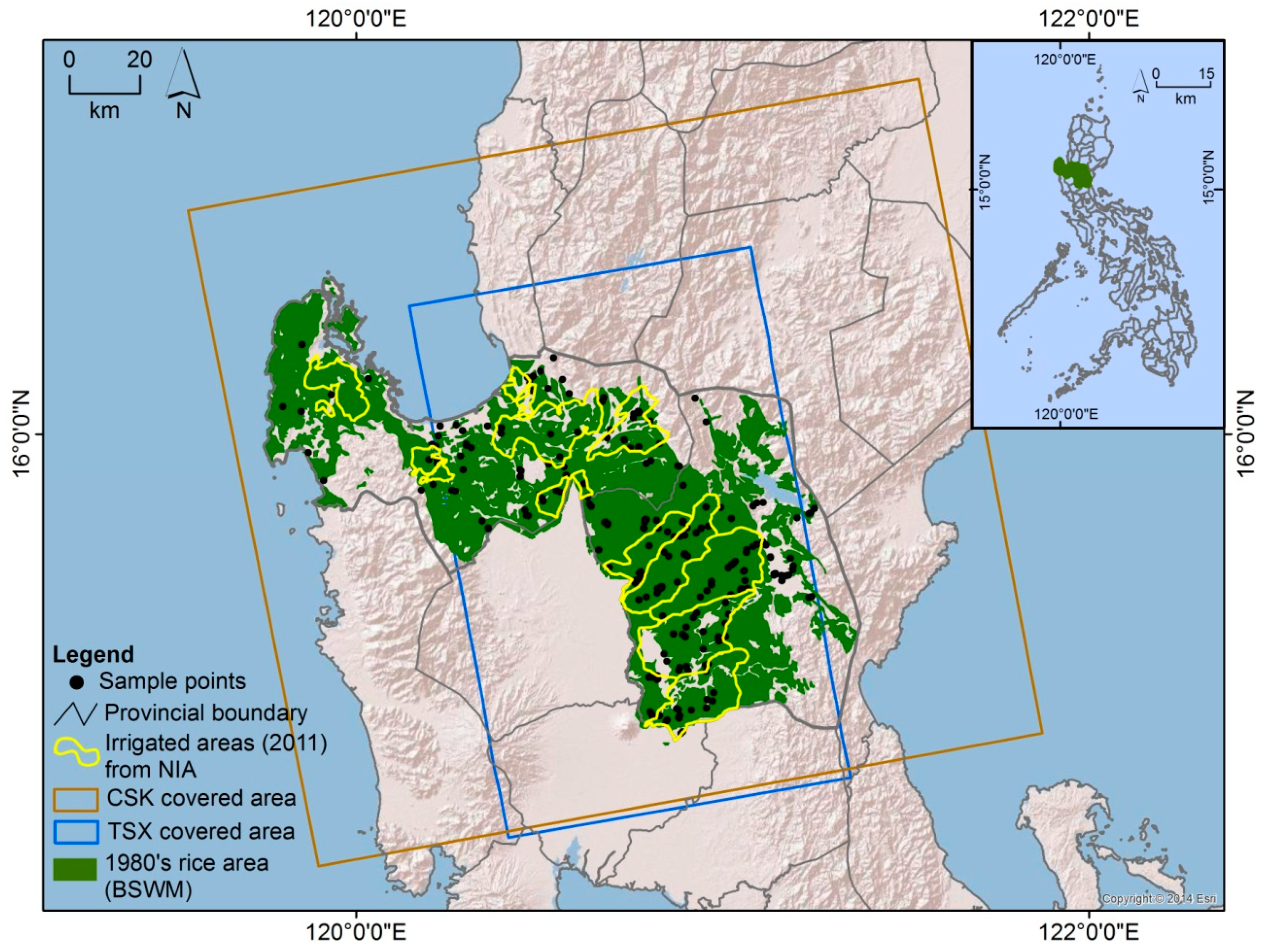 - BAS. Palay and Corn: Area Harvested by Ecosystem/Croptype, by Quarter, by Semester, by Region and by Province; Bureau of Agricultural Statistics: Quezon City, Philippines, 2014.