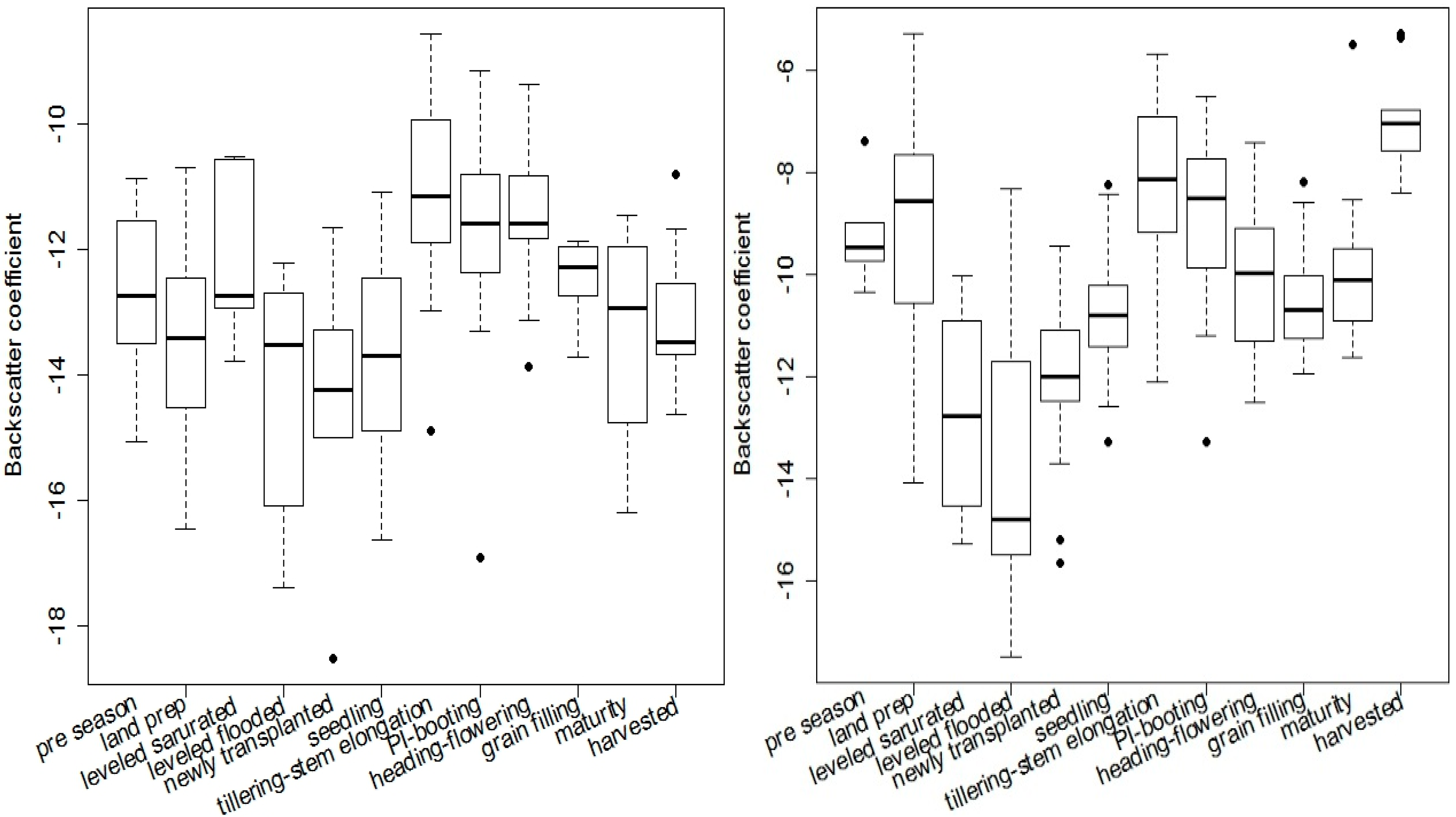 | Parameter | Backscatter Coefficient from Growth Stage | |||