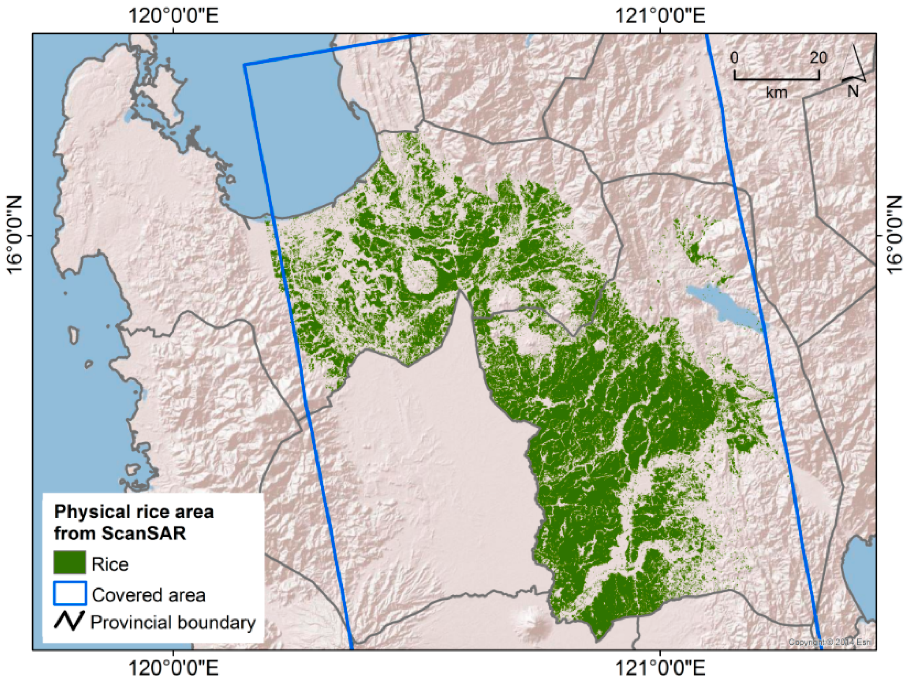 | Product (mode) | Huge region | ScanSAR | MOD09Q1 (h29v07) |