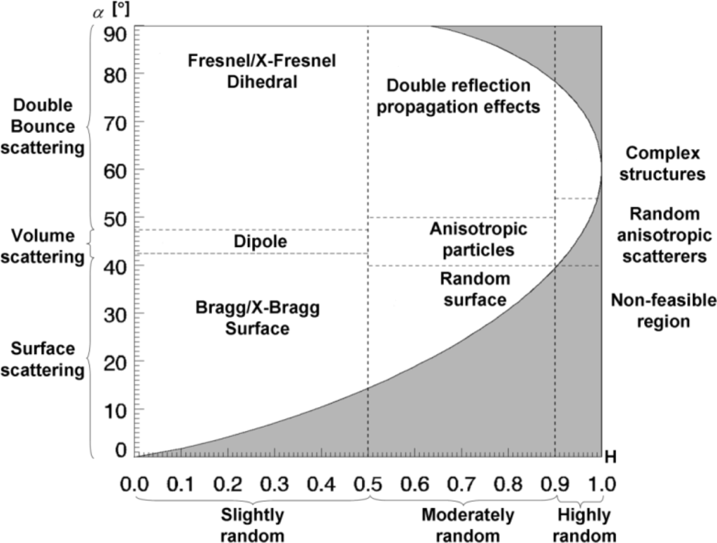 Therefore α relates directly to the dominant physical scattering mechanism of the scatterers in the resolution cell, which is visualized in Figure 4.
