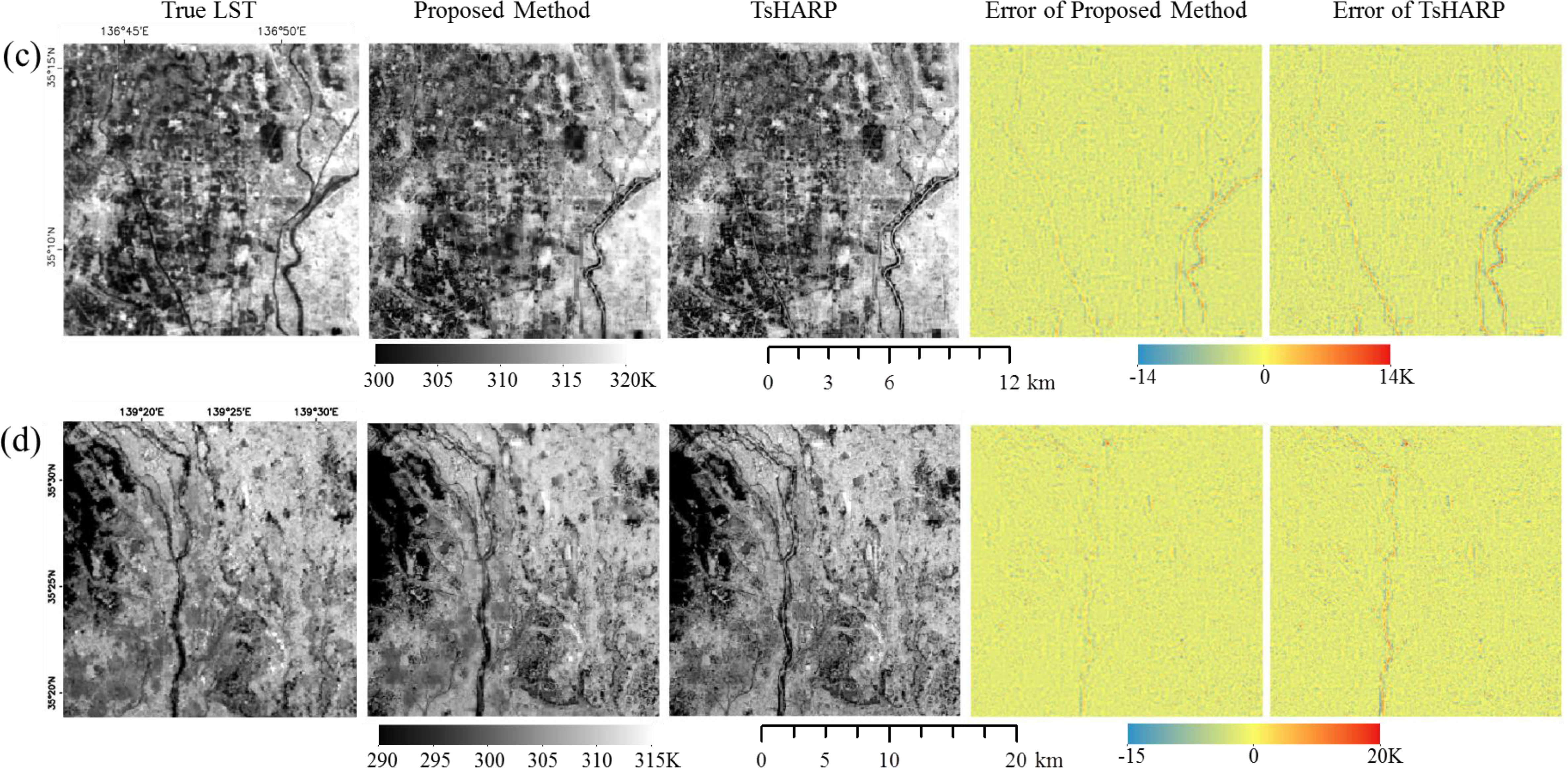 | d | ASTER | 25 April 2004 | Yokohama city, Japan (35.4N, 139.4E) | Urban (60%) | 256 × 256 (90 m) |