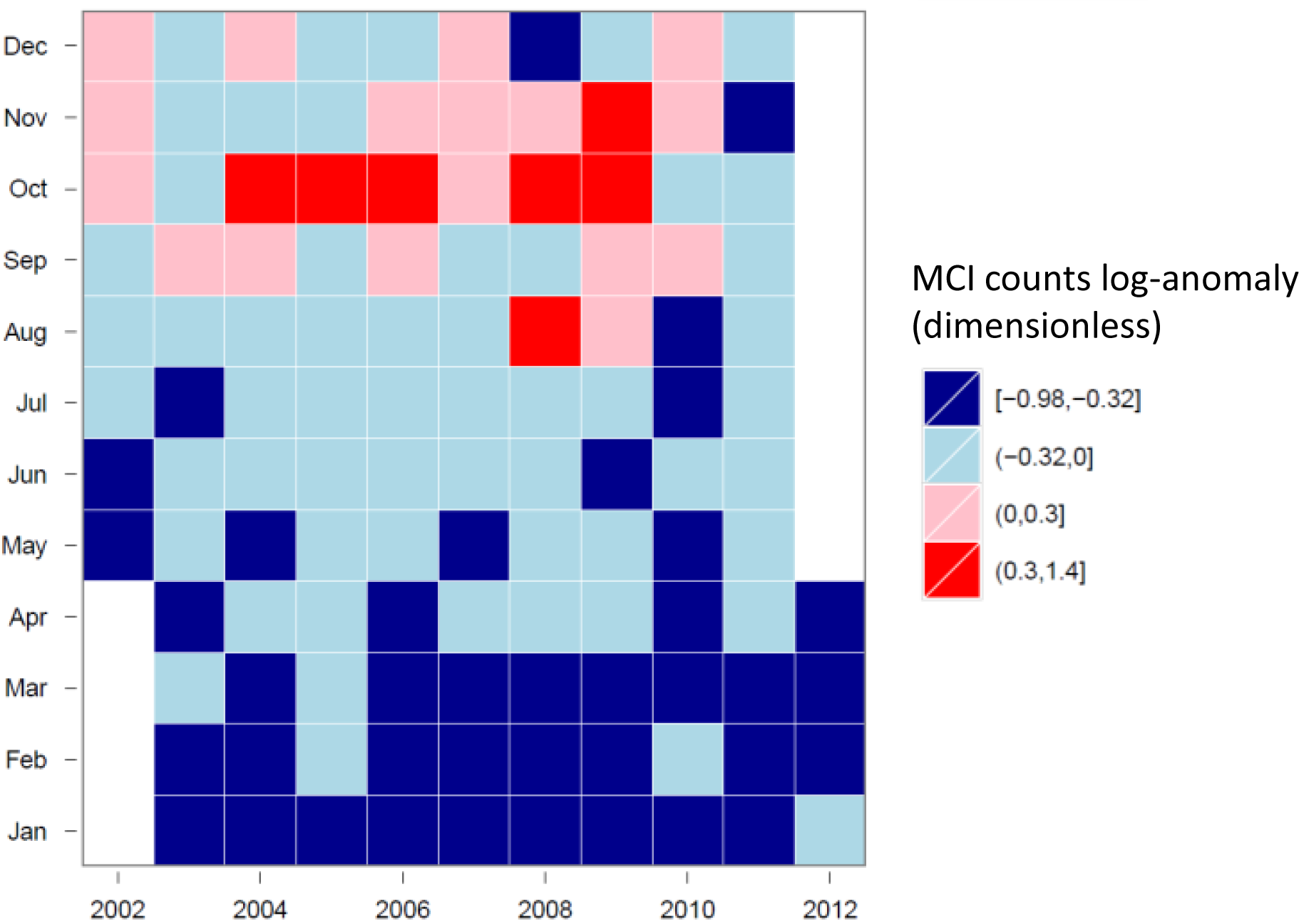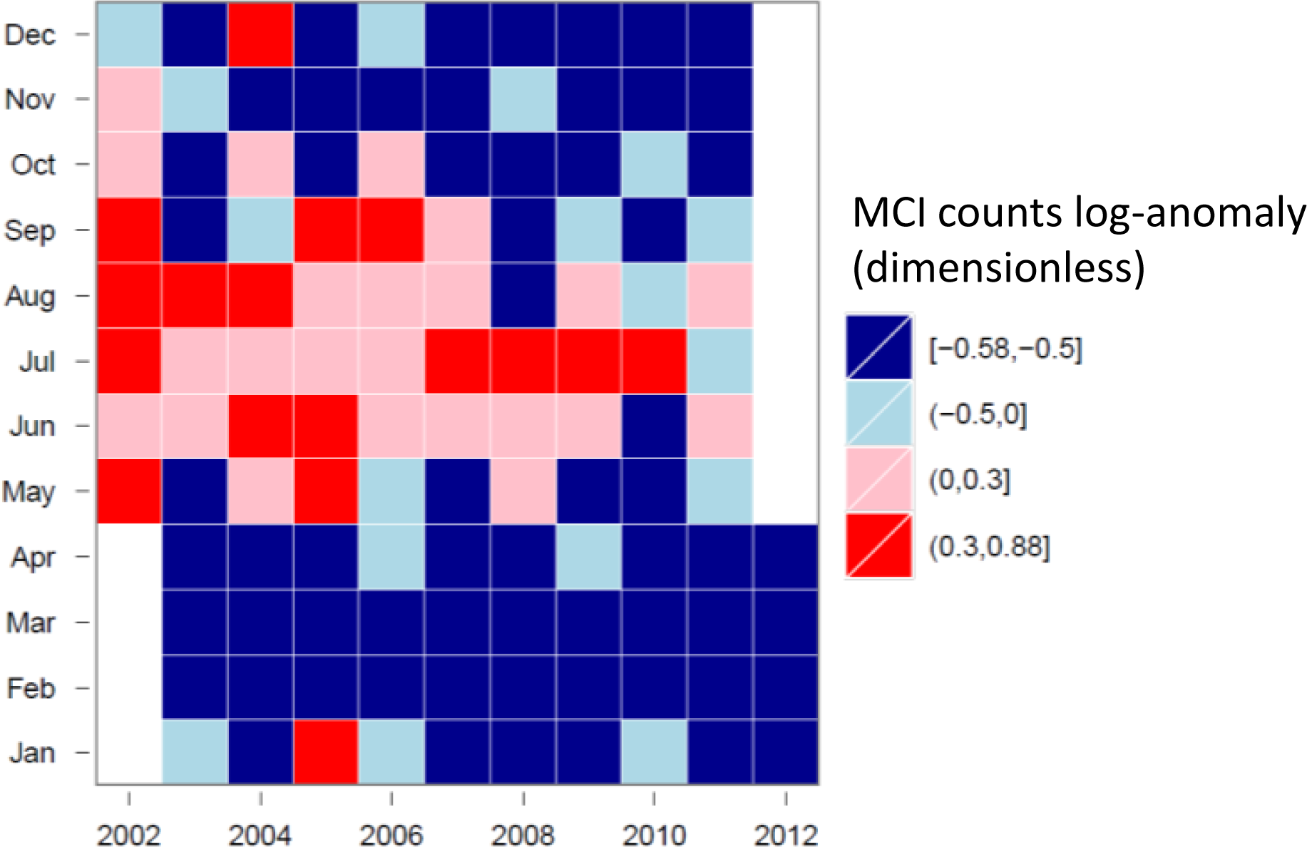 Tile-plot of MCI counts for the GBRW cluster (log-anomalies).