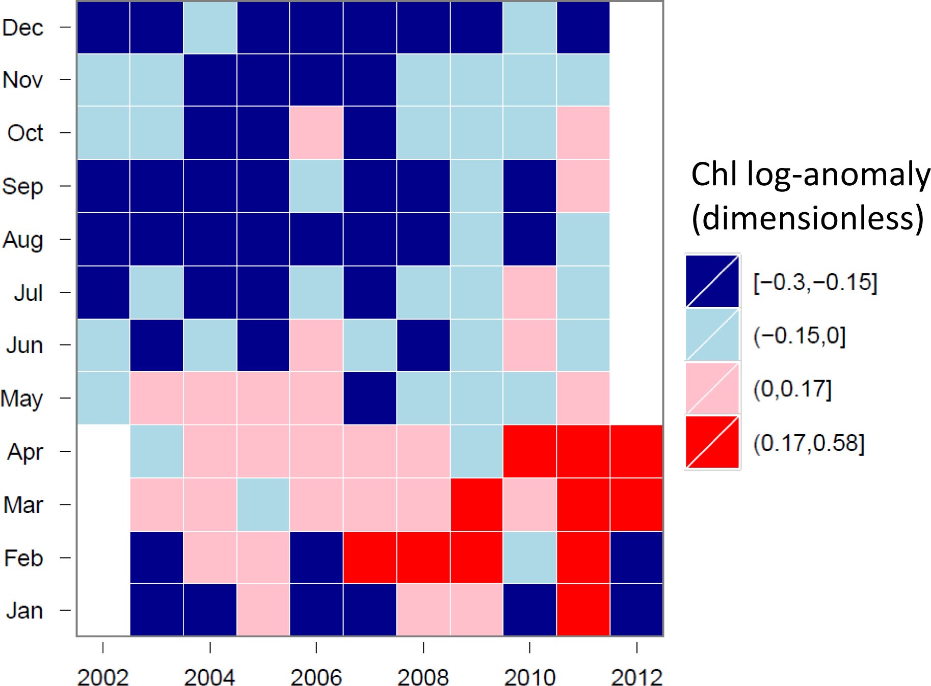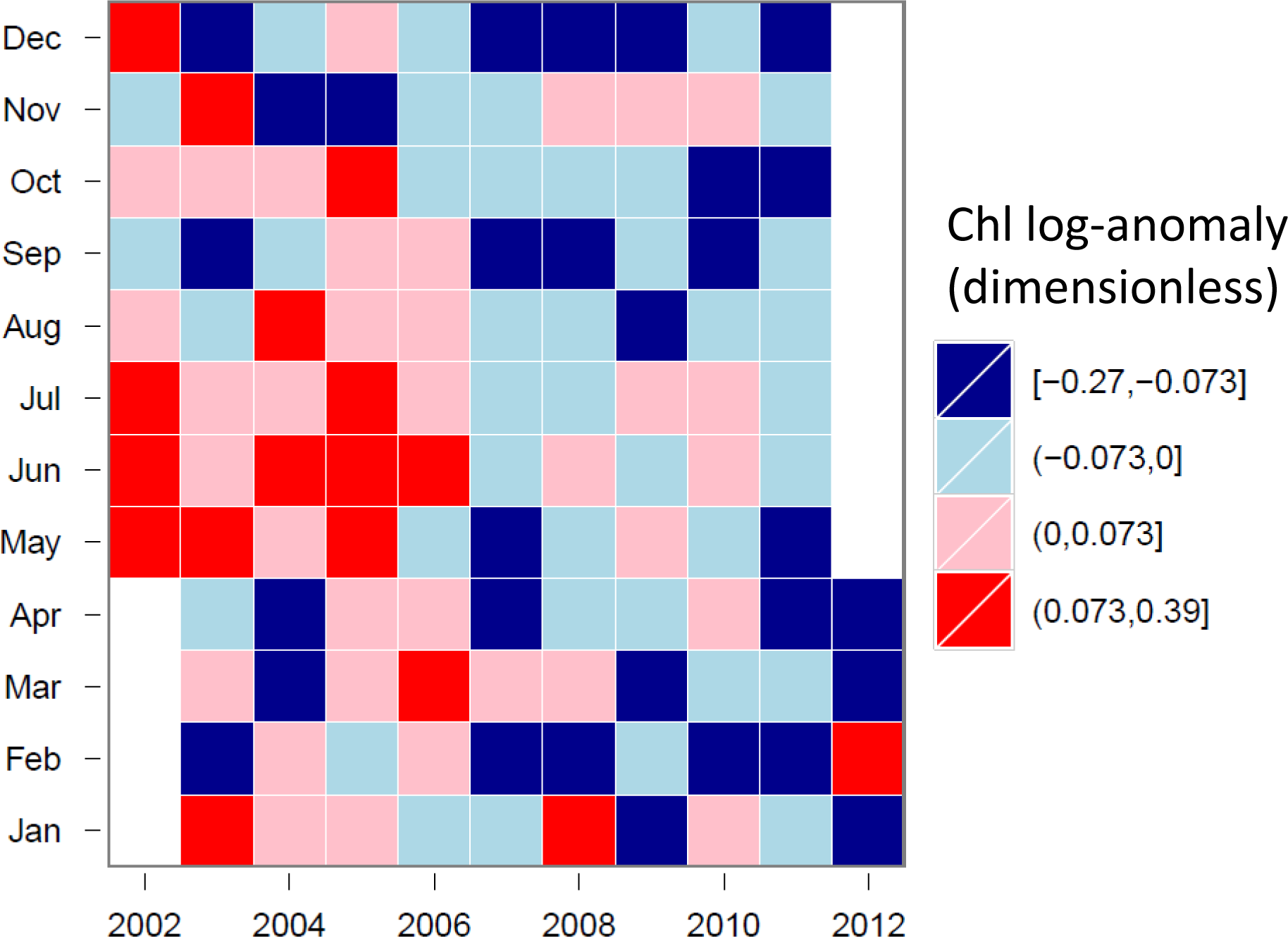 Tile-plot of Chl for the VDG cluster (log-anomalies).