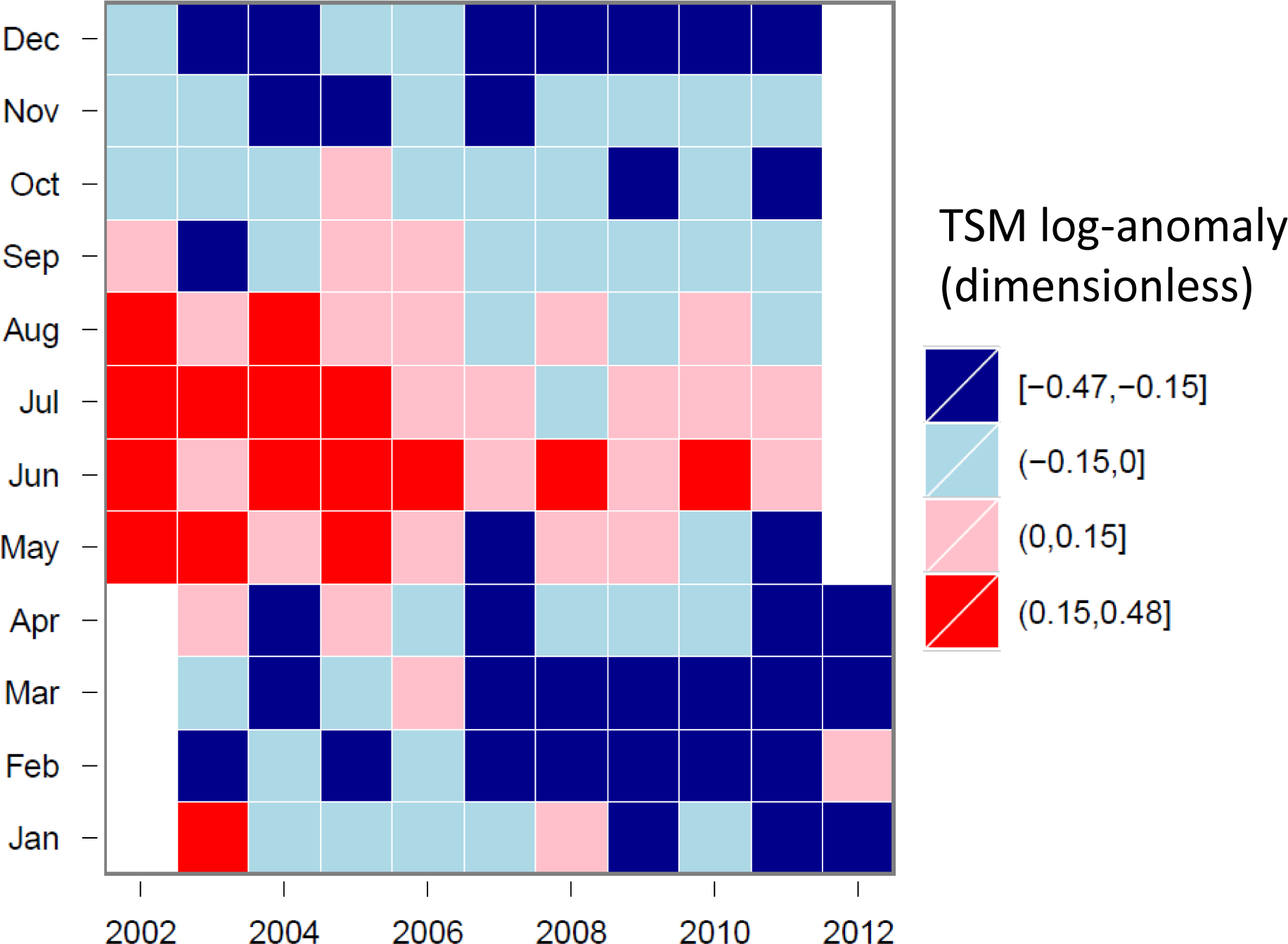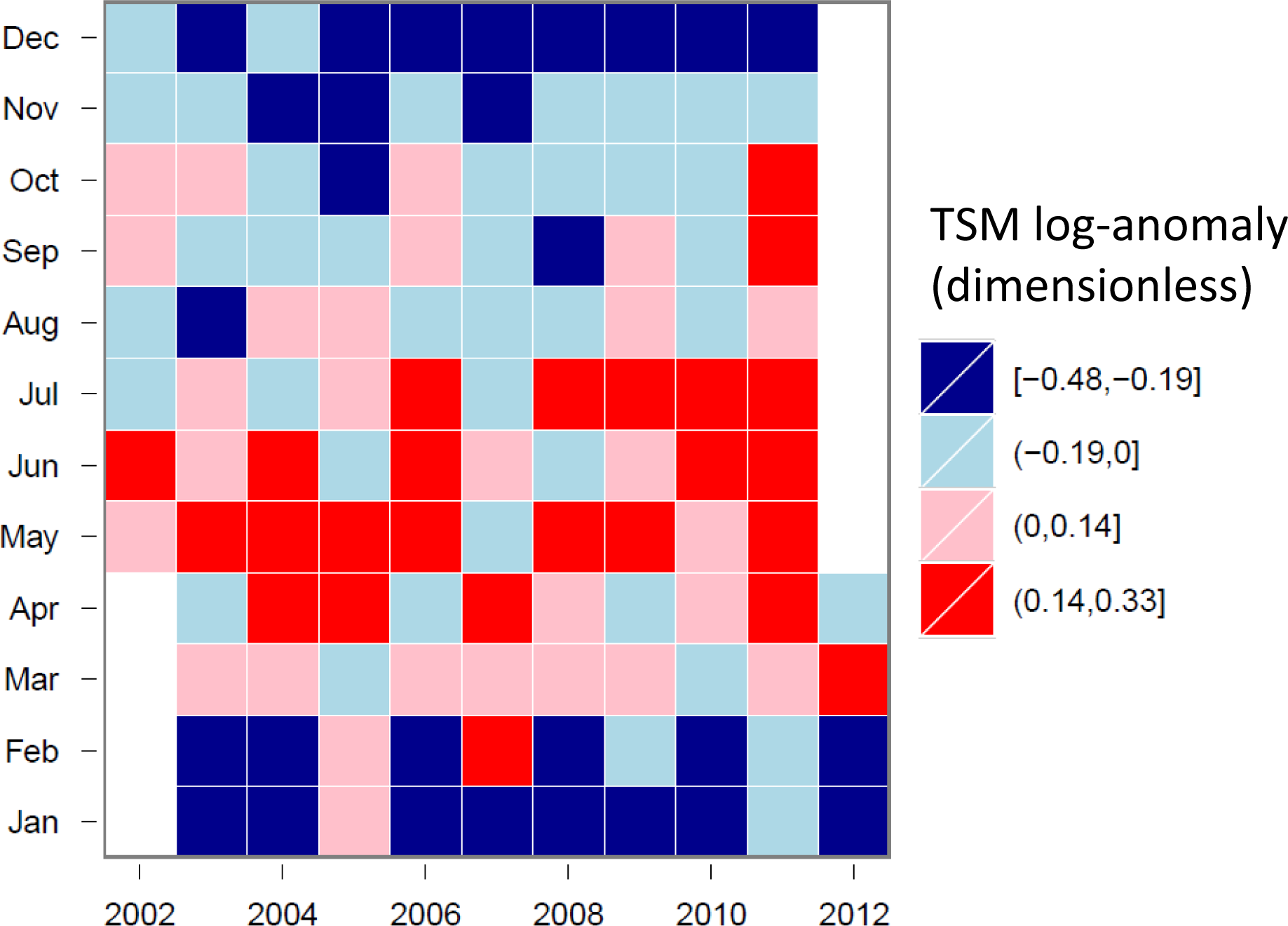 Tile-plot of TSM for the GBRW cluster (log-anomalies).