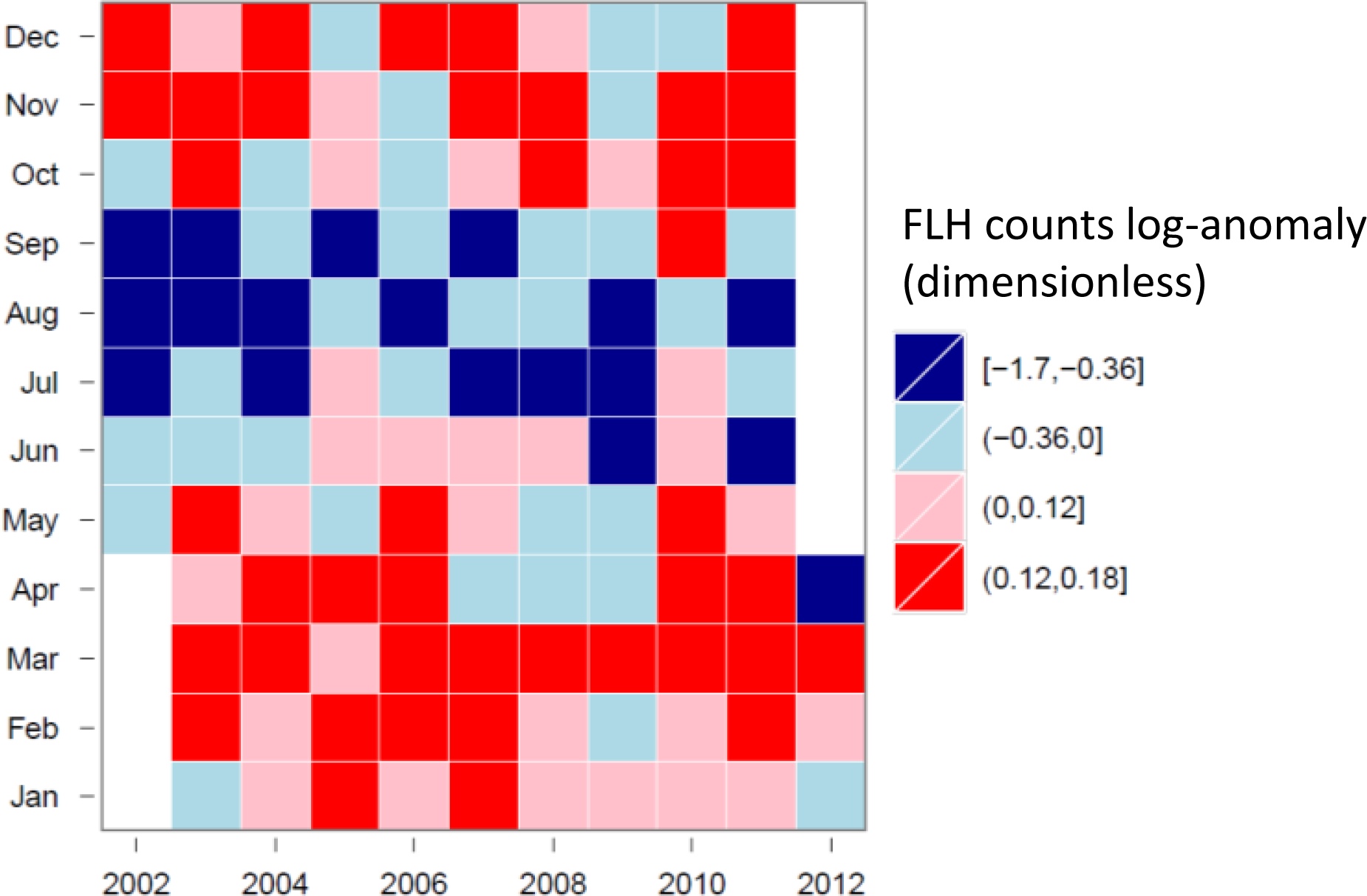 Tile-plot of FLH counts for the GBRW cluster (log-anomalies).