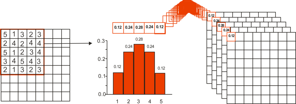 This paper introduces the probability density component analysis (PDCA) method, which calculates the frequency histogram for a moving window and distributes the value of each category in a specific image. Thus, a sequence of images is generated, where the total number of images is equal to the number of histogram bins (Figure 2).